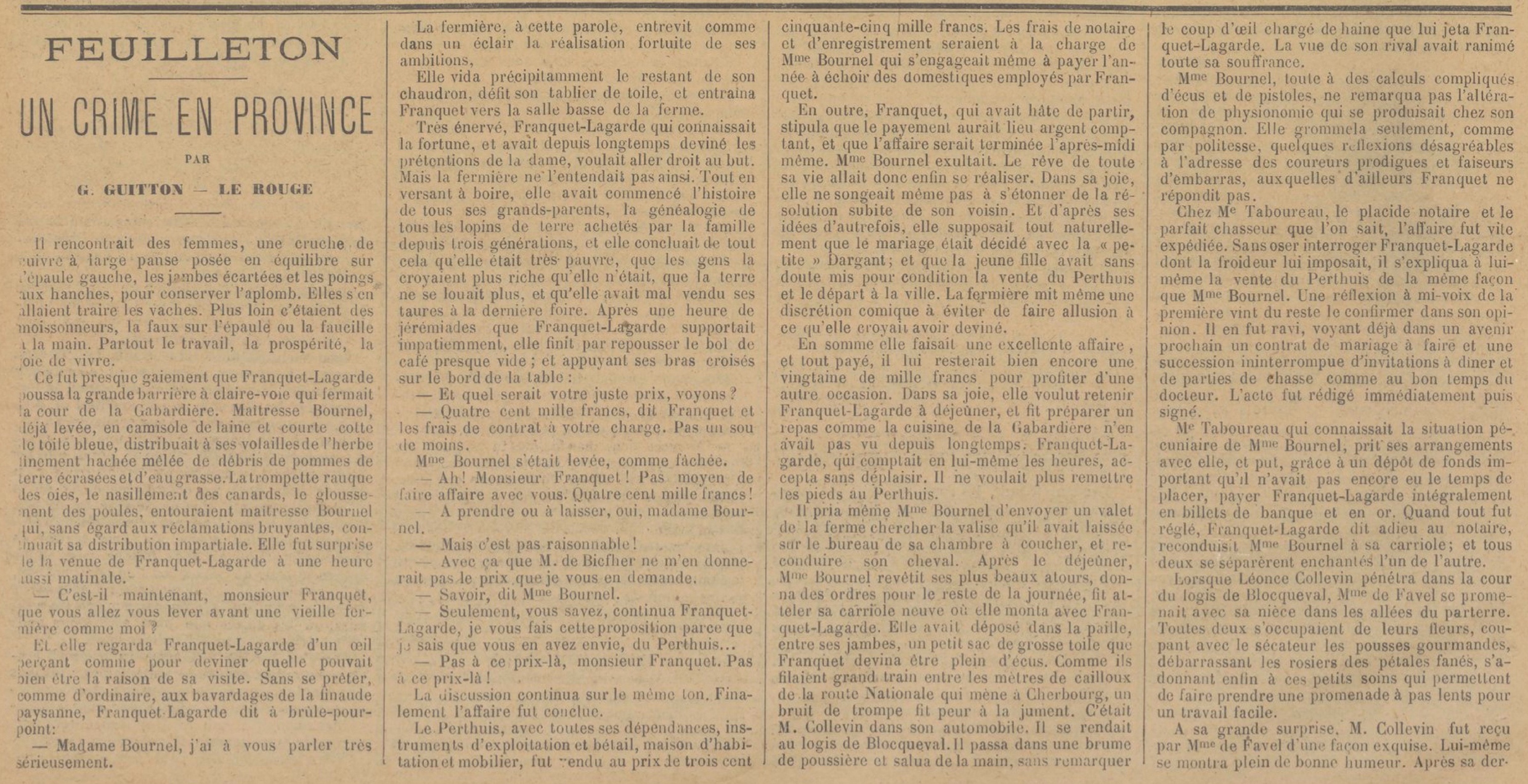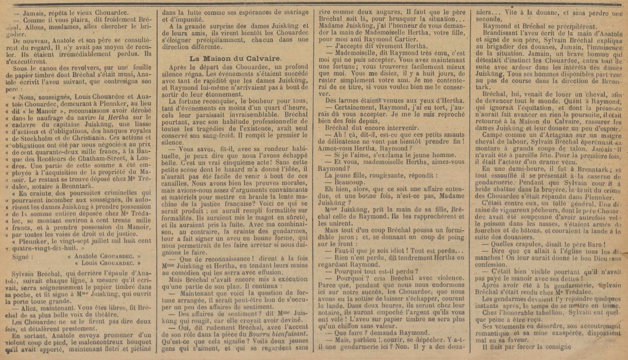 – Moi ? protesta-t-il ; non ! Je ne vous ai pas dit que Frenchy était riche. Je vous ai dit qu’il avait de l’argent pour le moment. Ce n’est pas la même chose. »