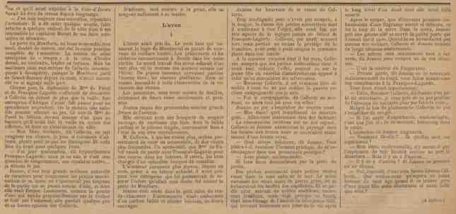 « Frenchy a de l’argent pour le moment, et il est bien mis. Il m’a même dit qu’il viendrait vous chercher en automobile ; une automobile qu’il a prise au mois. Et il voulait vous faire dîner dans un endroit chic, à Montmartre, par exemple. Il ne sort pas de Montmartre. Mais je lui ai expliqué que ce n’était pas possible, à cause de mon uniforme. Alors, il nous conduira à la campagne, quelque part, manger une friture.
