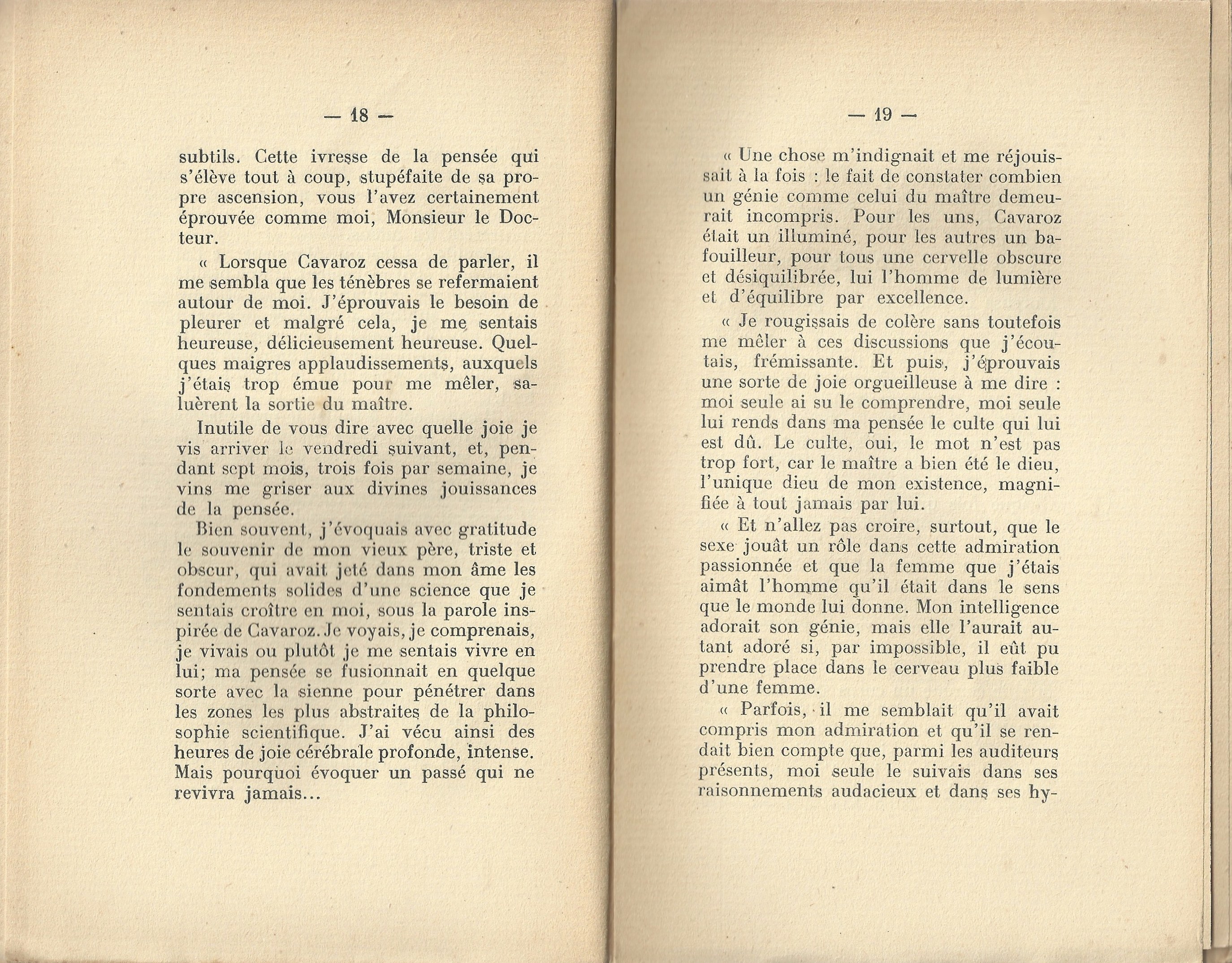 Il n’y avait pas moyen de lui en faire dire davantage. À force de l’interroger, je crus découvrir que ses réticences venaient de ce que, là-dessus, il ne savait rien par lui-même. Il avait retenu les conclusions d’un autre, en gardant un doute sur ces conclusions ; sachant seulement « qu’il y avait quelque chose, » quelque chose d’énigmatique, de mystérieux, de difficile à croire, même, mais de si neuf, de si caractéristique et frappant qu’il ne pouvait en tout cas plus rien croire de différent. Mais qu’était-ce donc, qu’était-ce donc ? Quand j’insistais, il détournait la conversation. Et puis, subitement, un jour, ce fut lui qui vint me trouver.