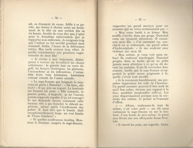 Mais j’avais tiré d’assez près, et mon gibier sans doute était délicat. Je le vis tomber, je l’entendis gémir, gémir… Alors, j’allai voir, et je trouvai – c’est difficile à vous expliquer : une bête qui n’était pas un singe et qui n’était pas un homme ; une très grande babakoute, si vous voulez. Mais j’en avais tiré jadis, des babakoutes, bien que, je vous le répète, ces animaux soient très difficiles à distinguer sous les arbres, et celui-là était si différent !