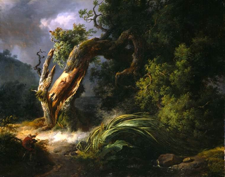 Soudain, le bruit des arbres éclata avec une force terrible et remplit la nuit d’un tumulte effroyable, comme si une robe énorme balayait en même temps toute la forêt. Au même instant, l’électricité s’éteignit.