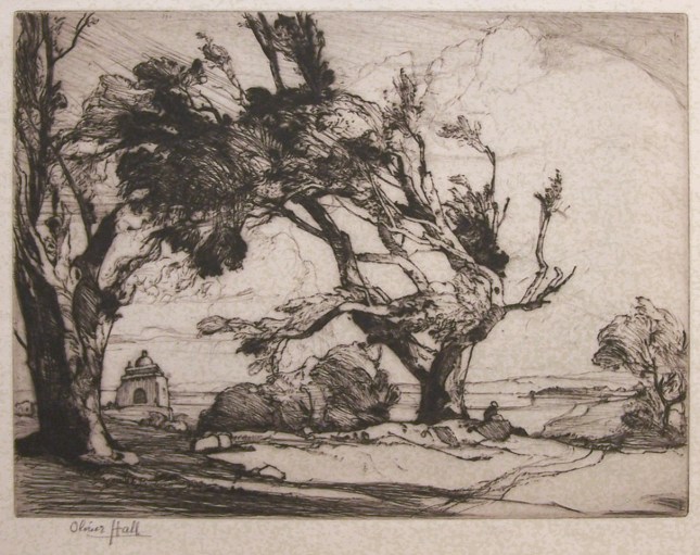 (Edmond Jaloux, « Contes de mille et un matins, » in Le Matin, trentième année, n° 10800, lundi 22 septembre 1913 ; Achille Michallon, « Le Chêne et le roseau, » huile sur toile, 1816 ; Oliver Hall, « Offshore Wind, California, » pointe sèche, sd)