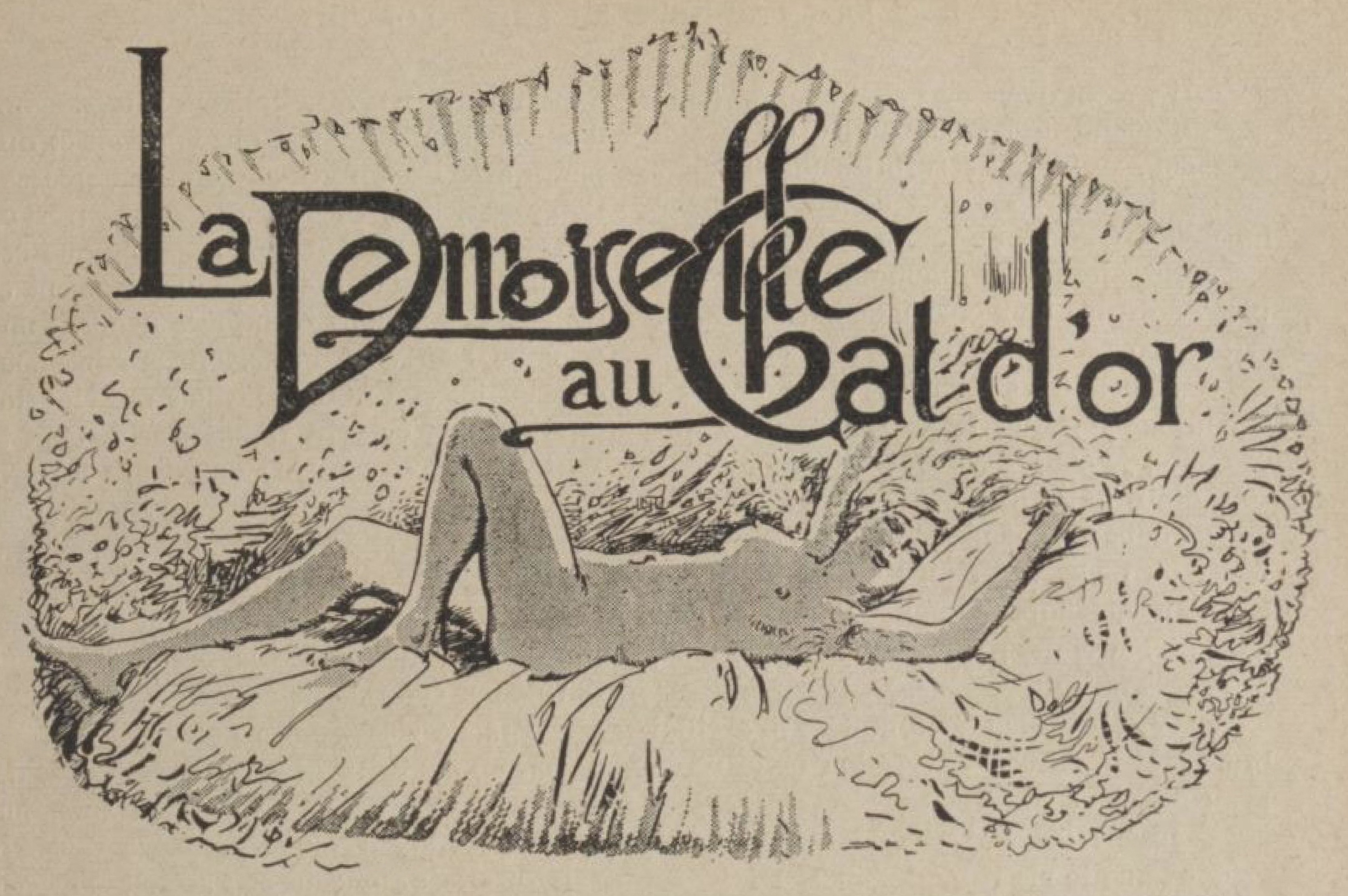 Je vis une chambre très vaste, meublée d’assez beaux meubles en très mauvais état, éclairée par la lampe d’une suspension. Au fond, un lit Henri II, fort bas. Sur ce lit, une femme, qui me parut jolie et jeune, complètement nue. Ses cheveux dénoués enveloppaient sa tête et ses épaules d’un foisonnement d’or. Elle se regardait, se caressait, passait ses bras sous ses lèvres, tordait son corps souple sur le lit avec des mouvements de grand félin. Et tous ses gestes dévoilaient de l’or.