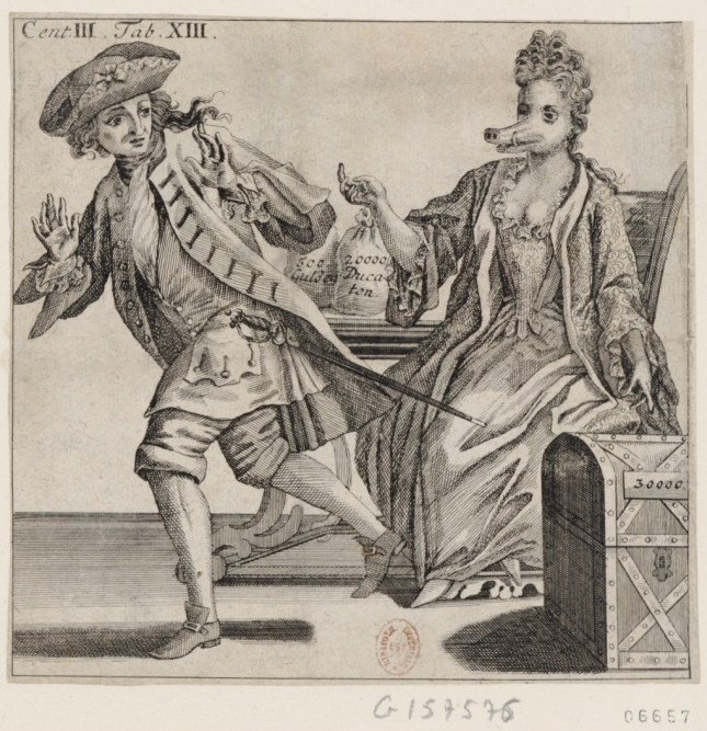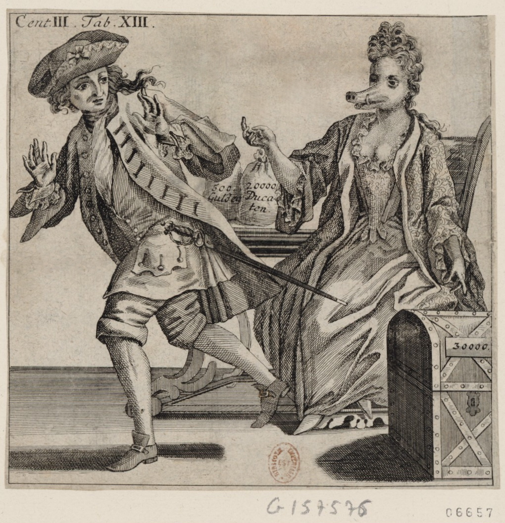 (Michel Delines, « Chronique, » in Paris, 2e édition, lundi 26 décembre 1892 ; « Un homme s’enfuit à la vue d’une femme ayant une tête de porc, » estampe satirique. Voir « Bénédicte, la femme-laie, » « Un portrait de Bénédicte » et « Le retour de Bénédicte »)