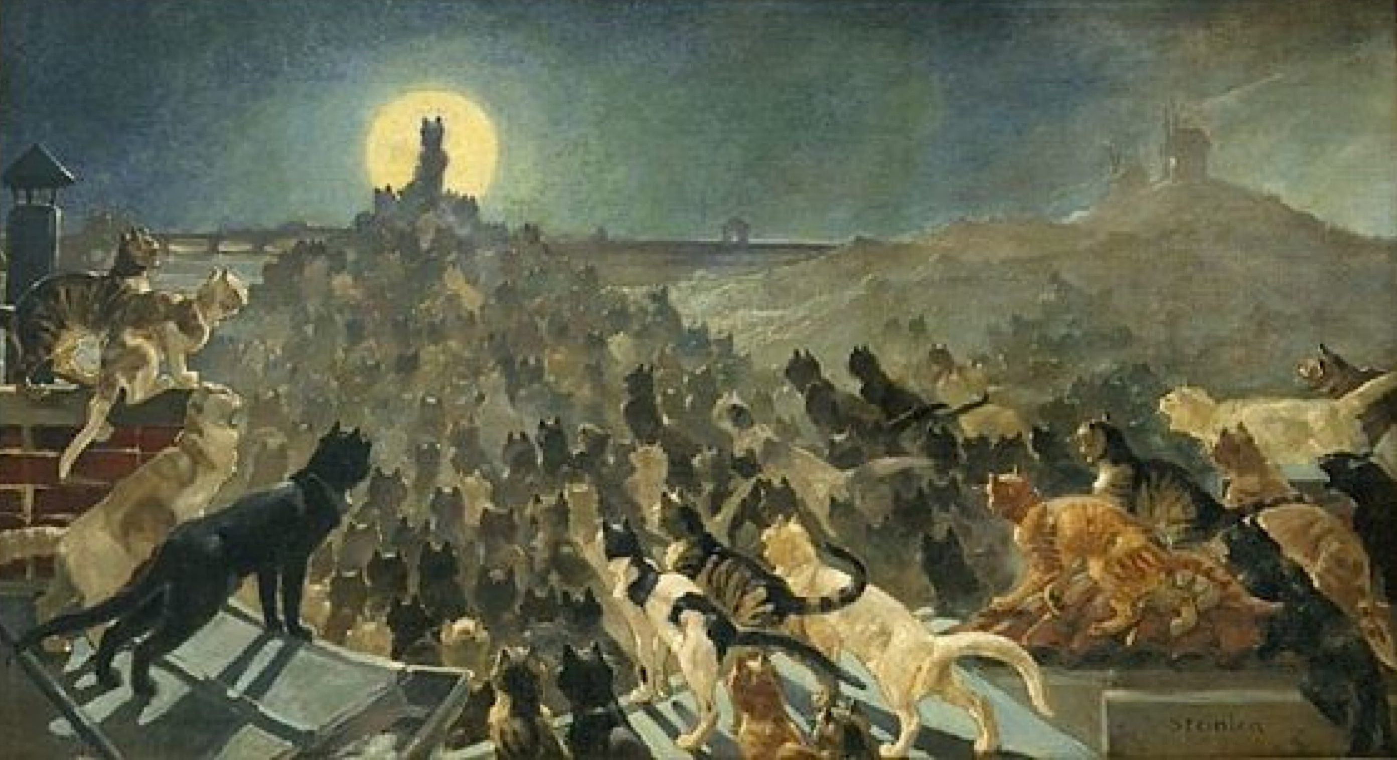 (G. Phœbus, in Le Soir, journal d’informations, vingtième année, n° 6073, mardi 23 février 1886 ; Théophile-Alexandre Steinlen, « L’Apothéose des chats à Montmartre, » 1905)