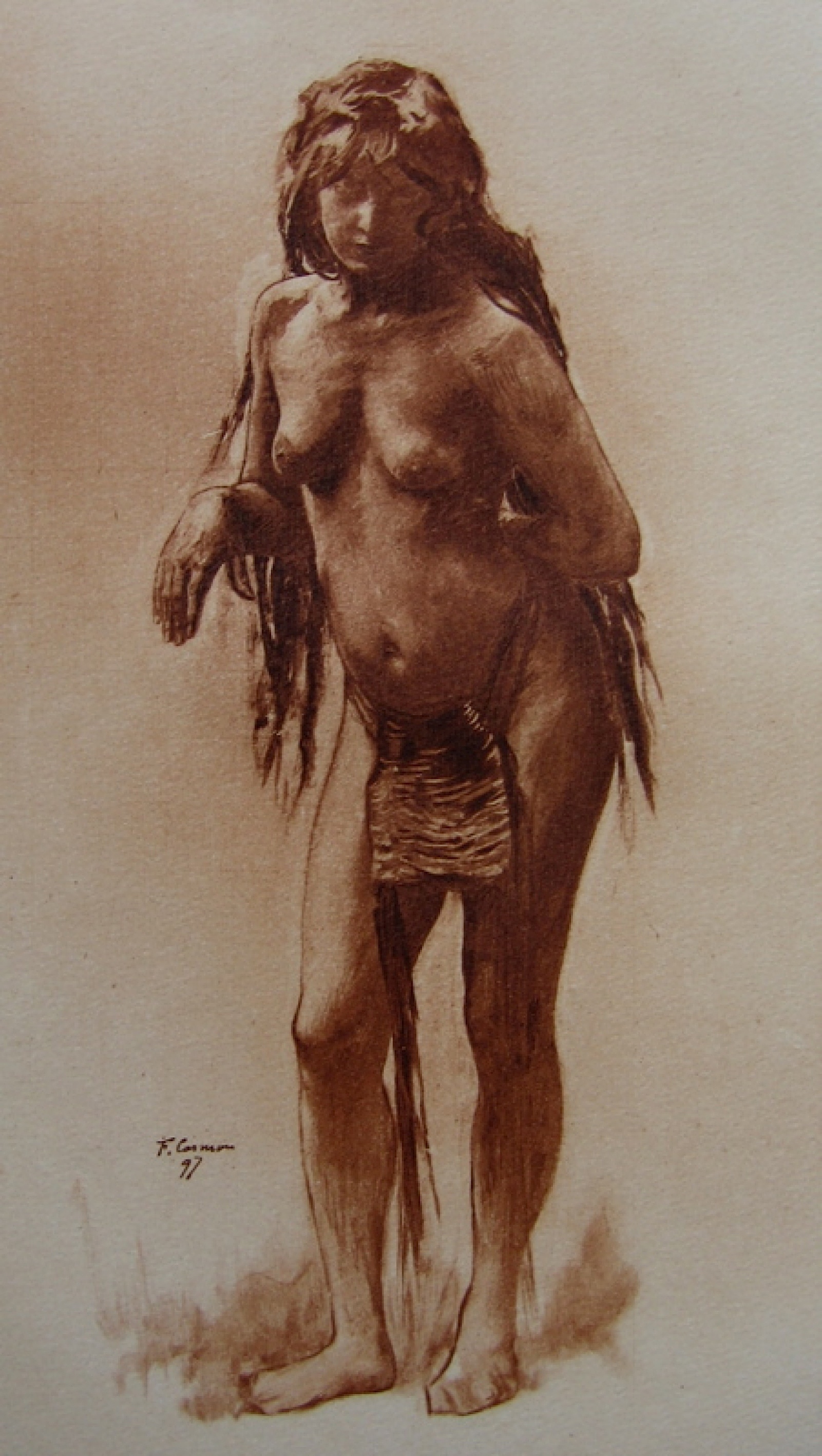 – Non, jamais je n’oublierai ces hanches-là ! Elle avait des jambes adorables, sans chairs, qui se ployaient comme un arc ; des bras qui allaient aux genoux, et qui étaient forts ! Sa chevelure l’inondait comme une coulée d’or lui ruisselant dans le dos ; pour la fixer contre le vent, elle y suspendait des cailloux.