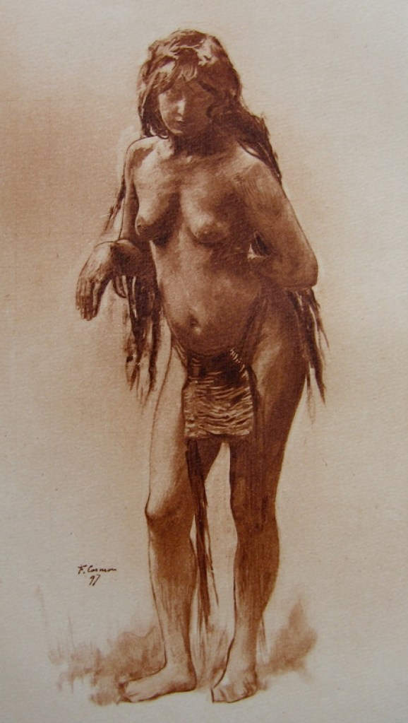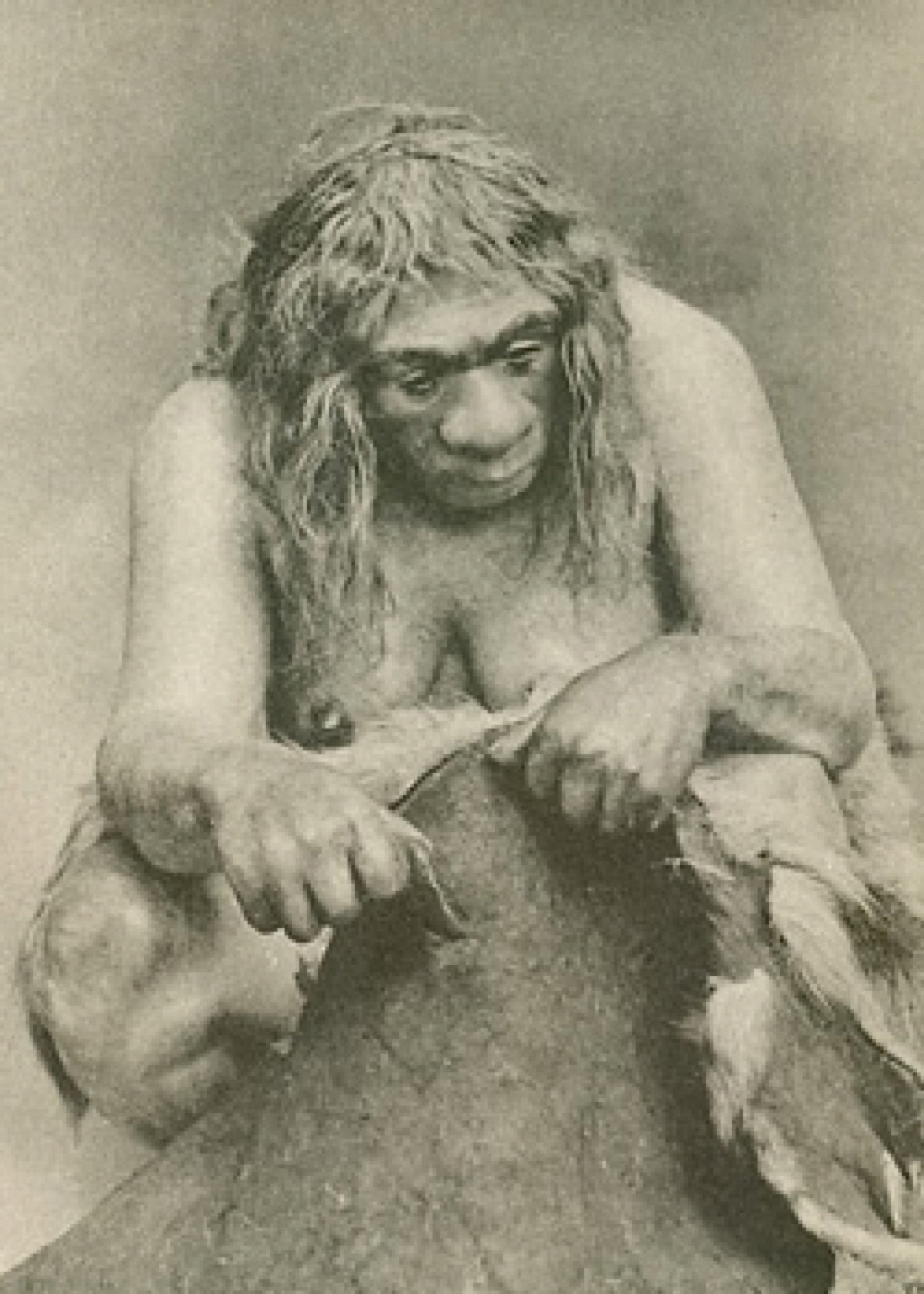 (H. Thuroz,« Conte fantastique, » in Le Journal populaire, première année, n° 10, vendredi 18 novembre 1881. Carte postale ancienne, représentant une femme de Néandertal ; Fernand Cormon, « Étude de femme, » 1897)