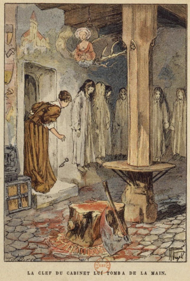 Il avait épousé la fille d’un roi du voisinage, princesse charmante s’il en fût, et, l’ayant ramenée à son palais, il lui remit, selon la coutume du pays, les clefs de toutes les chambres, en lui disant, d’un ton mi-sérieux, mi-badin :