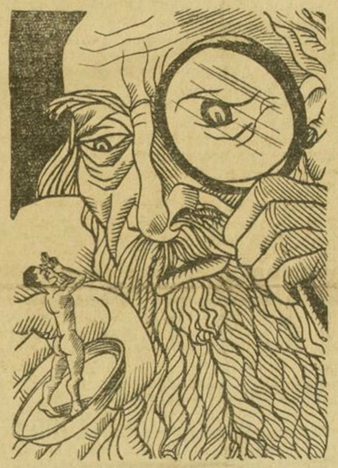 Quel monde, Seigneur, ou plutôt quelle jungle qu’écrasaient aveuglément vos semelles d’hommes « grands » ! Ces bâtonnets, ces sacs en boule, ces tortillons spirales sont d’infâmes microbes que traverse le brusque éclair des infusoires propulsés par leurs cils-hélices ; juchés sur des pédoncules transparents, des rotifères font vibrer près de leur bouche deux moulins de cils émettant une note triste.