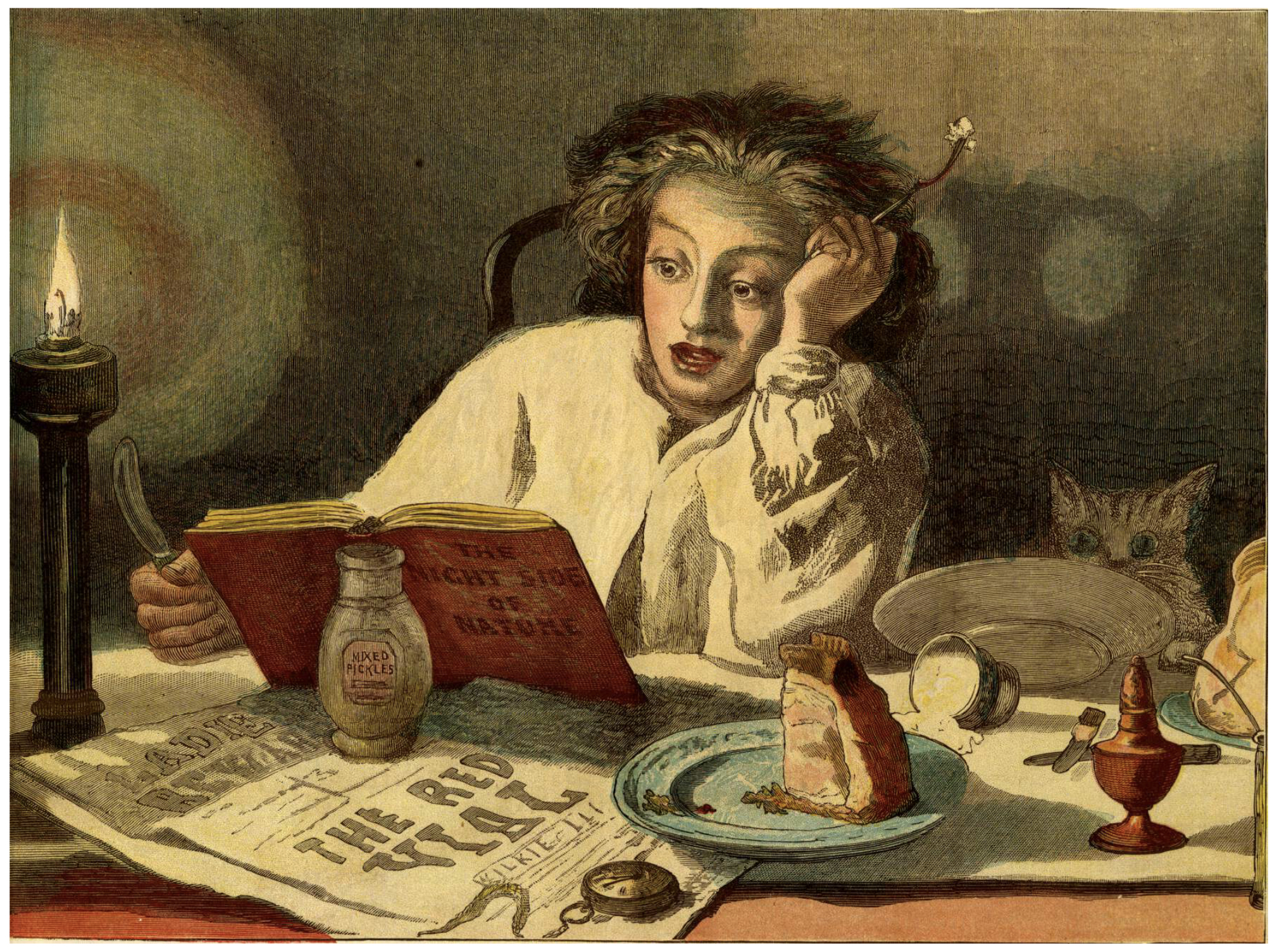 (Octave Béliard, in La Trêve-Dieu, revue d’Art et de Littérature [Le Havre], première année, n° 4, avril 1897 ; « The Ghost Story, » gravure d’après Frederick Smallfield, parue dans The Graphic, 9 décembre 1878)
