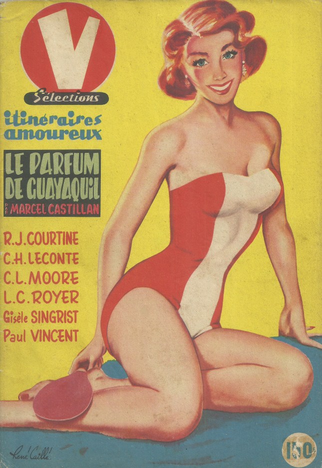 La Porte ouverte a l’immense plaisir de mettre en ligne aujourd’hui la nouvelle de Catherine L. Moore, « Shambleau, » avec les remarquables illustrations de Jean-Claude Forest. Parue initialement dans l’anthologie Escales dans l’infini, chez Hachette & Gallimard, collection « Le Rayon fantastique » n° 26, en 1954, elle a été reprise l’année suivante dans la revue V Sélections, dirigée par son traducteur, Georges H. Gallet, et magnifiquement illustrée par Jean-Claude Forest, le futur créateur de Barbarella, dont le premier épisode paraîtra huit ans plus tard dans les pages du même magazine. N’hésitez pas à cliquer sur les images pour les agrandir ; cela mérite assurément le coup d’œil…
