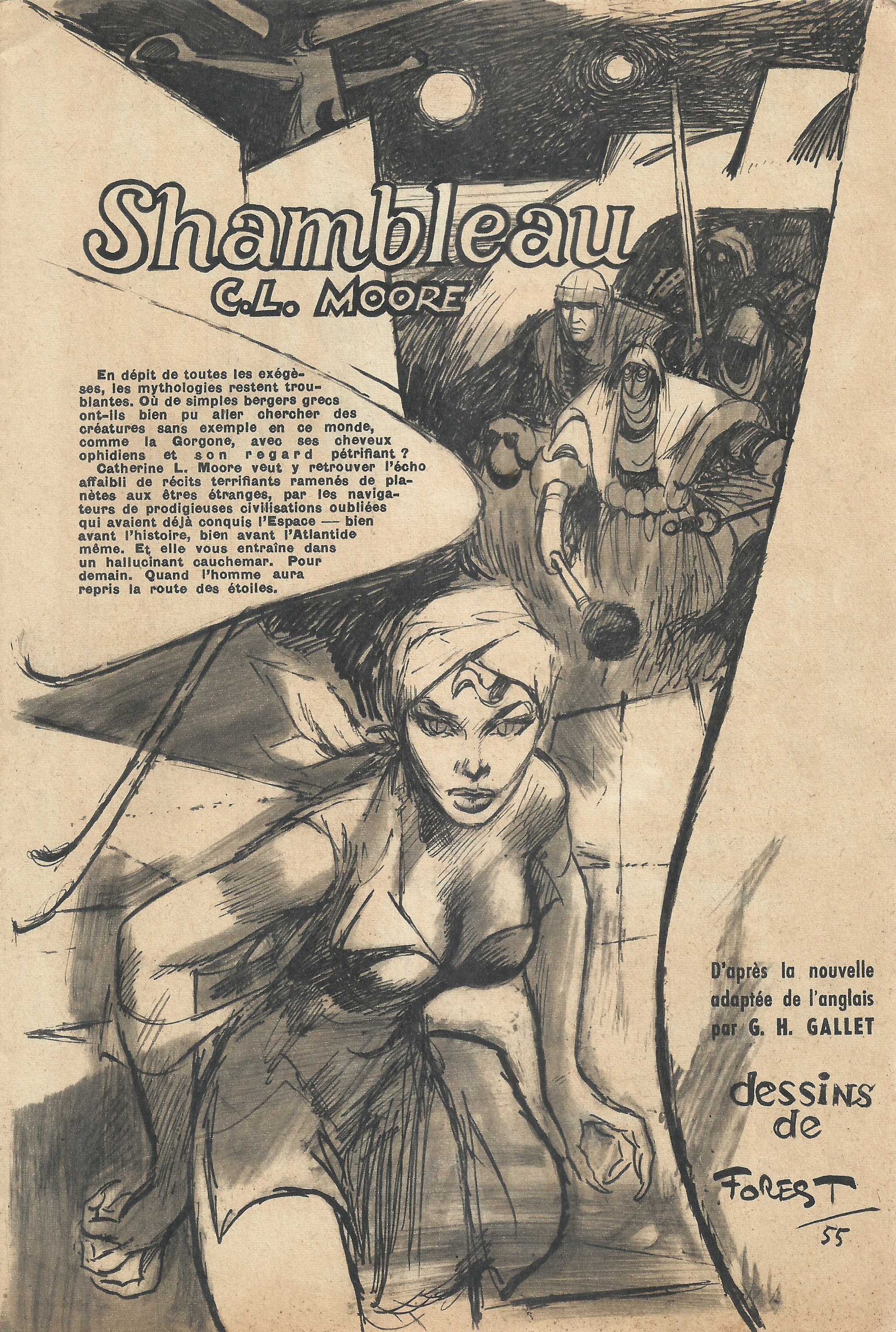 (Catherine Lucille Moore, « Shambleau, » adaptée par Georges H. Gallet, illustrations de Jean-Claude Forest, in V Sélections, été 1955)