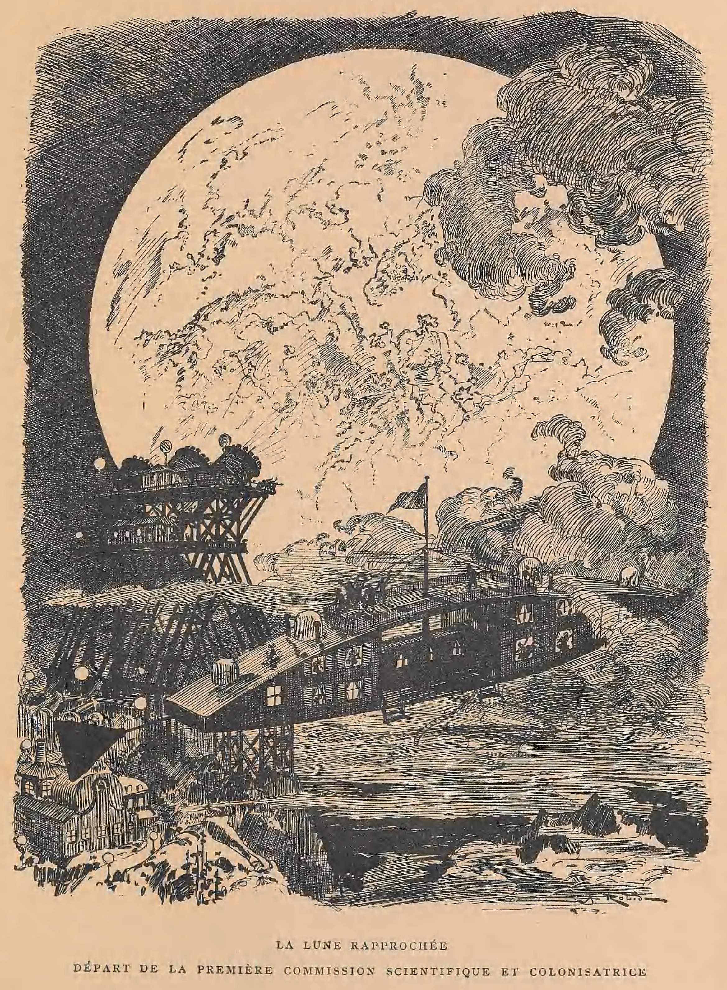 Alors, de formidables sociétés d’exploitation des mines de la Lune se dressent, édifiées sur un capital monstrueux, et des flottilles sont construites qu’on expédie là-bas.