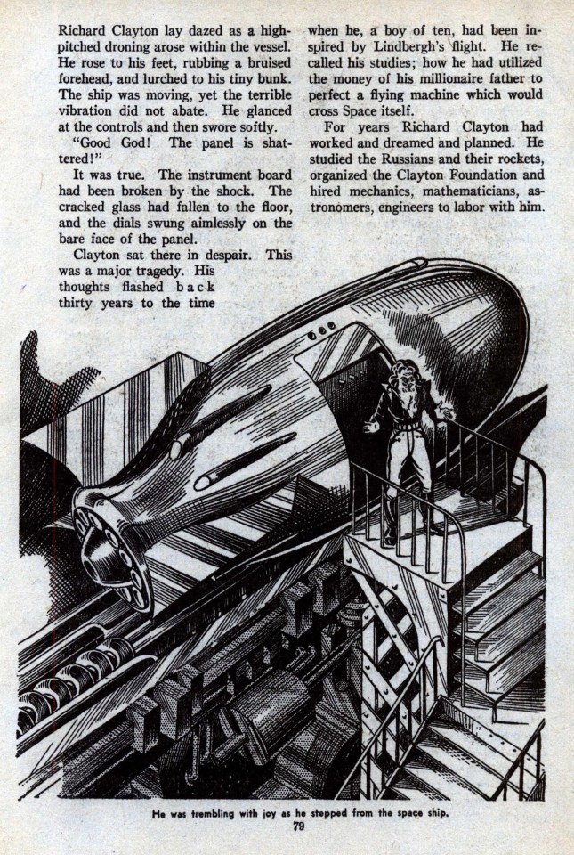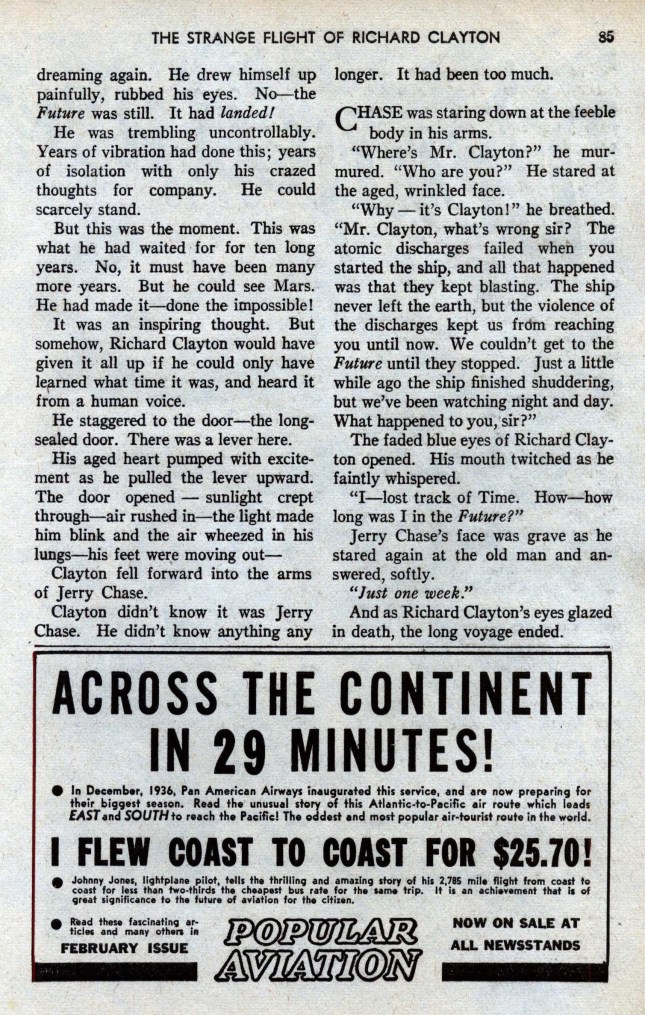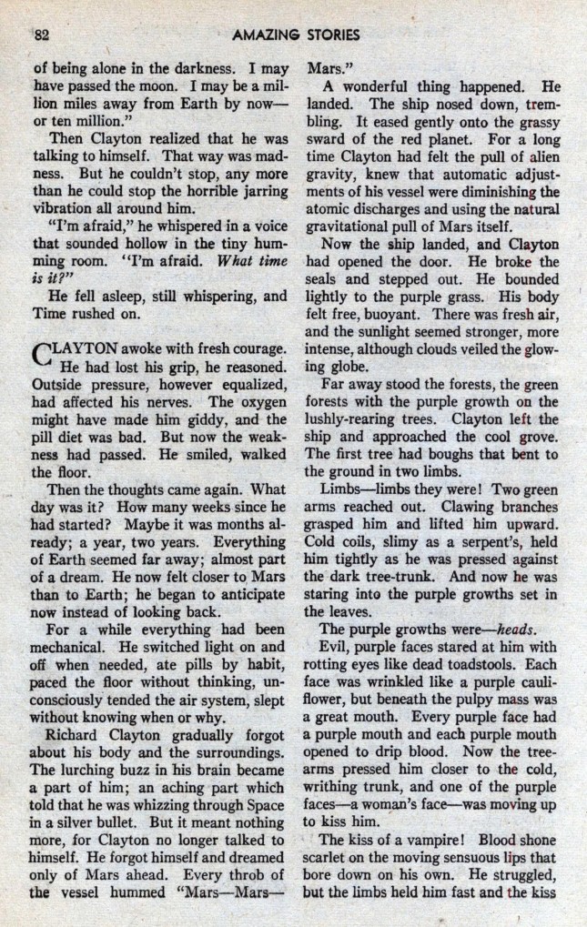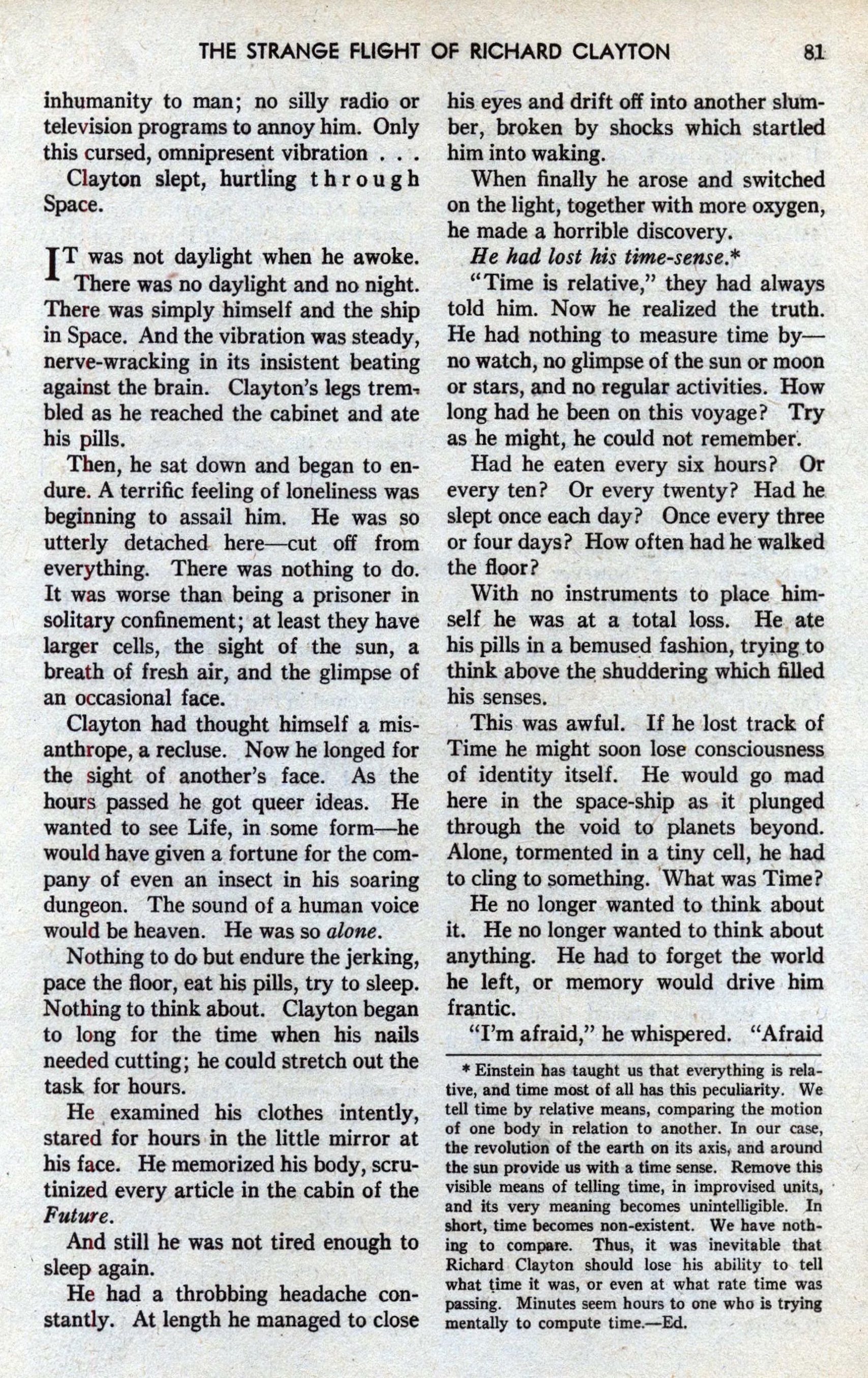 Peu à peu, ayant asservi la nature à tous leurs besoins, à tous leurs caprices, les hommes avaient perdu un à un tous les organes physiques devenus inutiles. La fonction, en effet, créant et perpétuant l’organe, les pieds, ne marchant plus, étaient devenus très petits, leurs orteils s’étaient soudés ; les jambes, n’ayant plus à supporter le poids du corps, un moteur de poche permettant à chacun de bondir à travers l’espace à l’allure de 300 kilomètres à l’heure, s’étaient atrophiées. Déjà l’on consignait de nombreux cas d’ankylose des articulations, si bien qu’on pouvait calculer qu’avant peu, par voie régressive, l’homme serait devenu une espèce de boule constituée par le cerveau, surmontant un tube très grêle, destiné à renfermer les organes indispensables à la vie : quelque chose comme un bilboquet pensant.