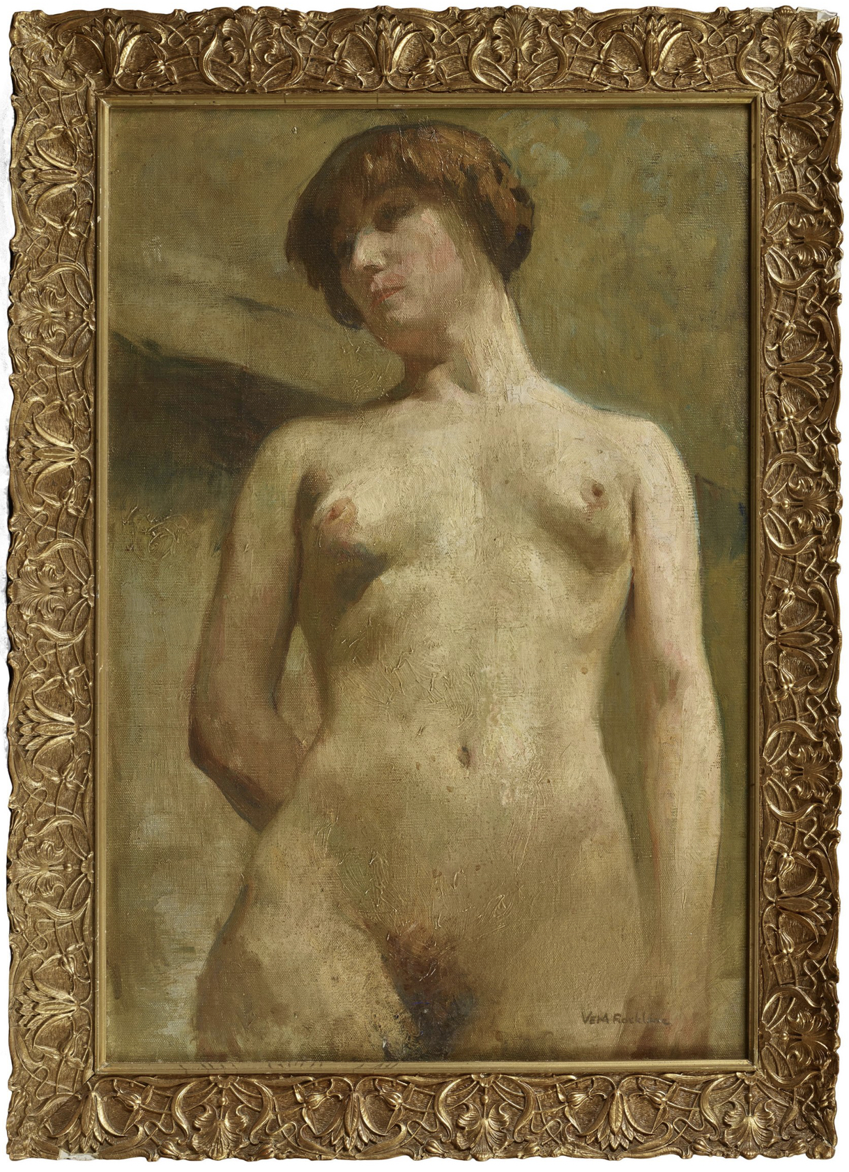 (Ernest-Maurice Laumann, « Nos Contes, » in L’Avenir de Paris, journal quotidien, deuxième année, n° 504, lundi 7 juillet 1919 ; Vera Rockline, « Nu féminin, » huile sur toile, sd)