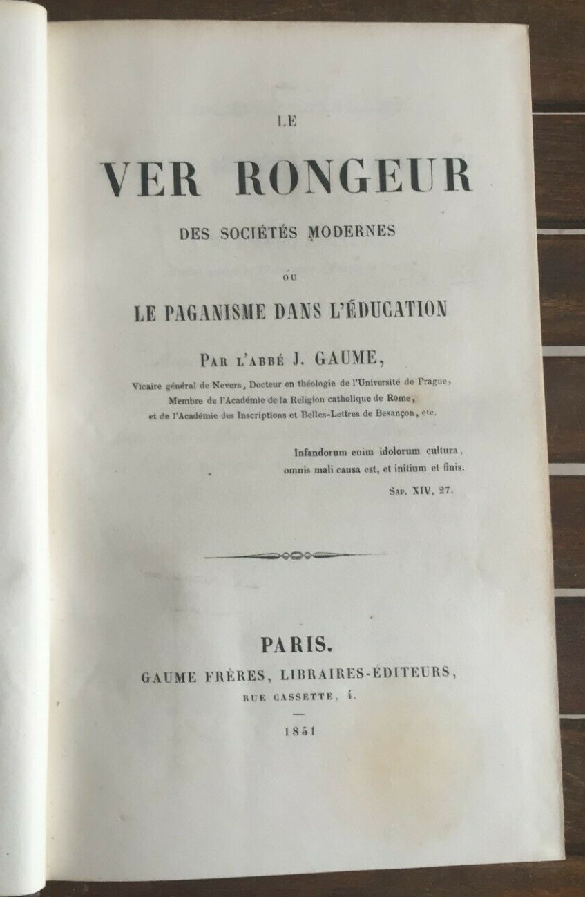 Voilà où nous a conduits l’éducation païenne. Si on n’écoute pas les conseils de l’abbé Gaume, nous tomberons bientôt dans l’abîme de la mythologie.
