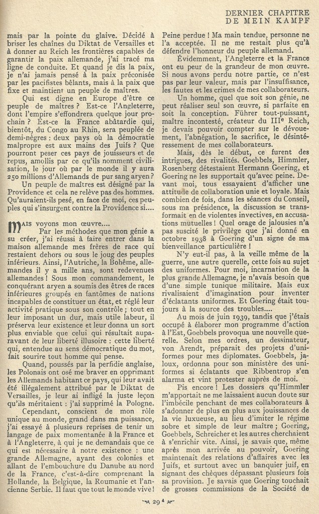 DERNIER CHAPITRE DE « MEIN KAMPF » : UNE ANTICIPATION… D’ADOLF HITLER Publié le 19 juillet 2021 Partager: Cliquer pour partager sur X(ouvre dans une nouvelle fenêtre) X Cliquez pour partager sur Facebook(ouvre dans une nouvelle fenêtre) Facebook J’aime chargement… Similaire Catégories :LE JARDINIER DU CRÉPUSCULE