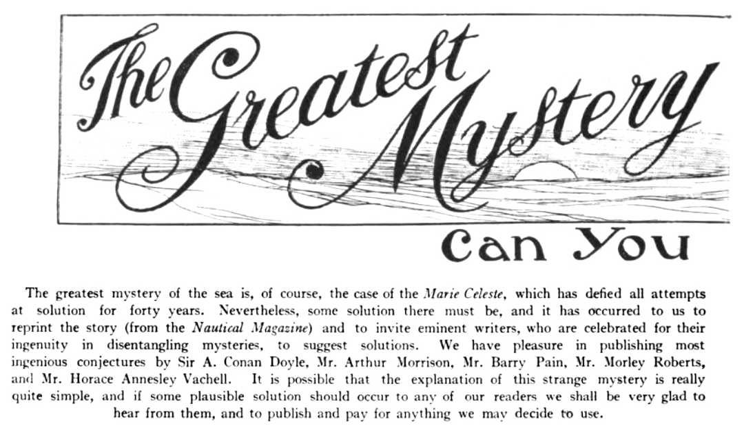 (Théodore de Wyzewa, in Le Temps, cinquante-troisième année, n° 19002, dimanche 13 juillet 1913 ; les illustrations sont extraites de l’article « The Greatest Mystère of the Sea: Can you solve it? » du Strand Magazine de juillet 1913)