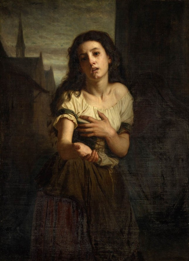 (Jean Reibrach, « La Vie brutale, XIII, » in L’Écho de Paris, journal littéraire et politique du matin, sixième année, n° 1849, samedi 1er juin 1889 ; repris dans La Lanterne, supplément littéraire, n° 351, jeudi 23 janvier 1890 ; puis dans Fin de Siècle, journal littéraire illustré, onzième année, n° 1130, dimanche 29 décembre 1901. Hugues Merle, « Une Mendiante » et « L’Abandonnée, » huiles sur toile, 1861 et 1872)