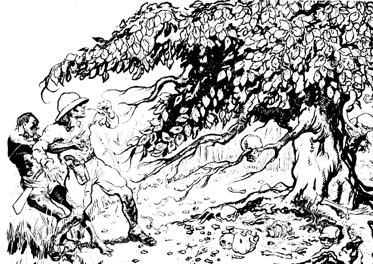 16 octobre. – Je suis seul. Joseph a tenté de fuir avec Anita. Je ne leur en veux pas. La terreur leur avait presque fait perdre la raison. Ils ont tenté de fuir, mais leur lâcheté a été punie. Par la fenêtre, je les ai vu partir, atteindre la lisière… Les arbres les ont laissés s’éloigner… Puis une violente tempête a semblé secouer la forêt, mais c’est elle qui remuait l’atmosphère de tous ses rameaux en fureur. Les branches mortes jonchaient le sol. Ses fruits étranges se détachaient avec des sifflements de projectiles et les lianes fouettaient l’air avec rage. J’ai entendu un grand cri, puis plus rien… Les arbres ont repris leur calme.