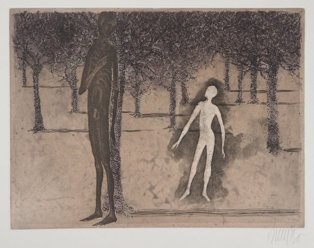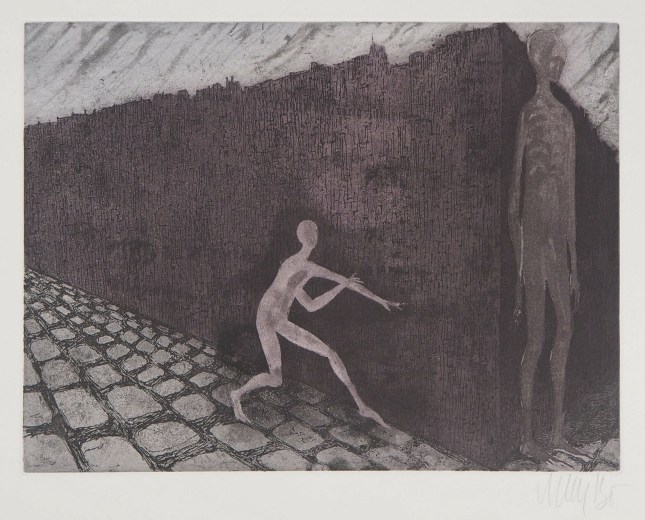 (Pierre de la Batut, « Les Contes de l’Intransigeant, » in L’Intransigeant, quarante-quatrième année, n° 15506, jeudi 18 janvier 1923 ; Lars Bô, « Rencontre surréaliste, » eau-forte, 1975)