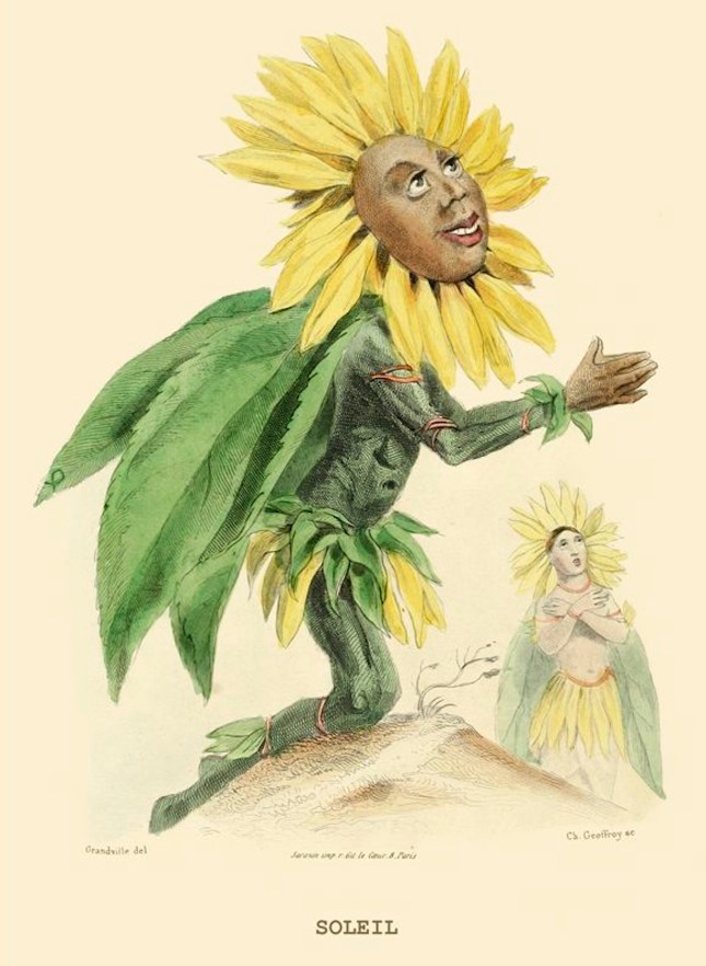 (S., « Chronique du jeudi, » in L’Express industriel alsacien, trente-troisième année, n° 192, dimanche 19 août 1909 ; illustration de Gustave Doré pour les Aventures du Baron de Münchhausen de Rudolf Erich Raspe, Paris : Furne, Jouvet & Cie, [1862] ; Jean-Jacques Grandville, « Le Soleil, » illustration pour Les Fleurs animées, 1867)