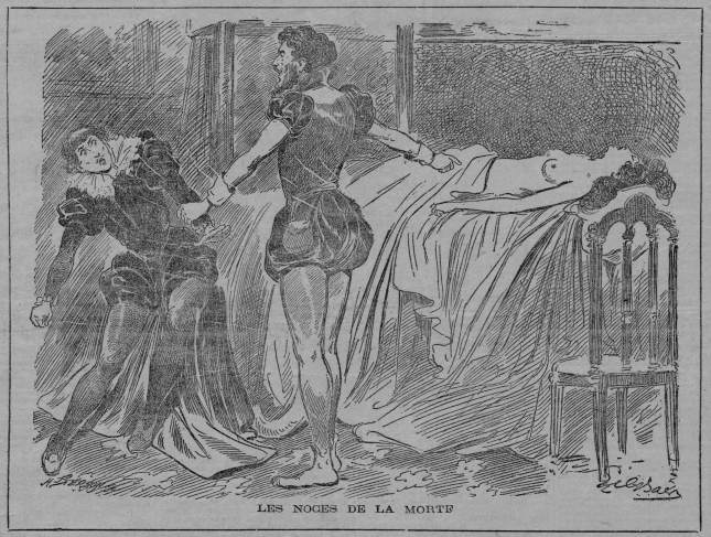 (Maurice Leblanc, in Gil Blas, dix-septième année, n° 5764, vendredi 30 août 1895 ; in Le Supplément, grand journal littéraire illustré, quatorzième année, n° 1257, 4 septembre 1897 ; in Gil Blas illustré hebdomadaire, neuvième année, n° 10, 10 mars 1899. L’illustration de Gil Baer est extraite de la publication dans Le Supplément ; ce texte a récemment été repris dans l’excellent recueil réuni par Jean-Luc Buard, La Clef rouge et autres contes cruels et de mort, Cadillon : Le Visage Vert, octobre 2021)