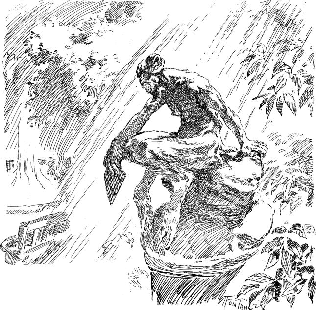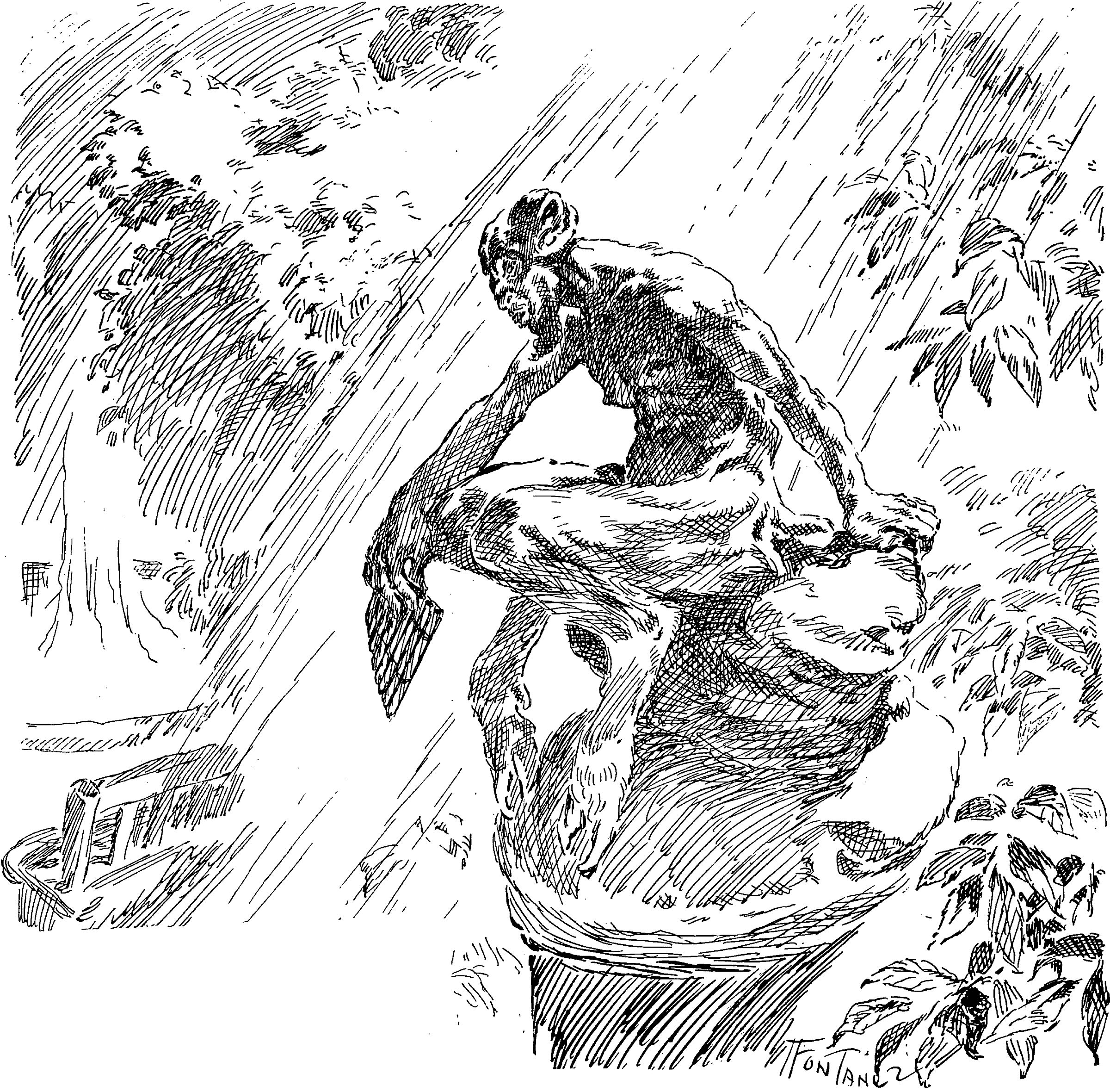 Nous avions convenu de l’endroit où nous nous séparerions ; l’angle brusque d’une des allées dont la végétation était la plus luxuriante et où les eaux courantes faisaient grand bruit. C’était le lieu où – l’enquête l’avait révélé – s’étaient laissé distancer par leurs compagnons les jeunes filles disparues. Il se trouvait là une statue de terre cuite verdie, moussue, érodée, représentant un satyre «grandeur nature, » debout, jambes croisées, appuyé du coude sur un terme. Statue antique certainement, mais qui n’avait rien de remarquable. Là, tandis que je continuais de marcher en fumant un cigare avec les allures les plus insoucieuses, – Faïli s’arrêta, leva une jambe, appuya le pied sur le socle, se pencha et fit semblant de mieux disposer et de renouer la tresse de son espadrille.