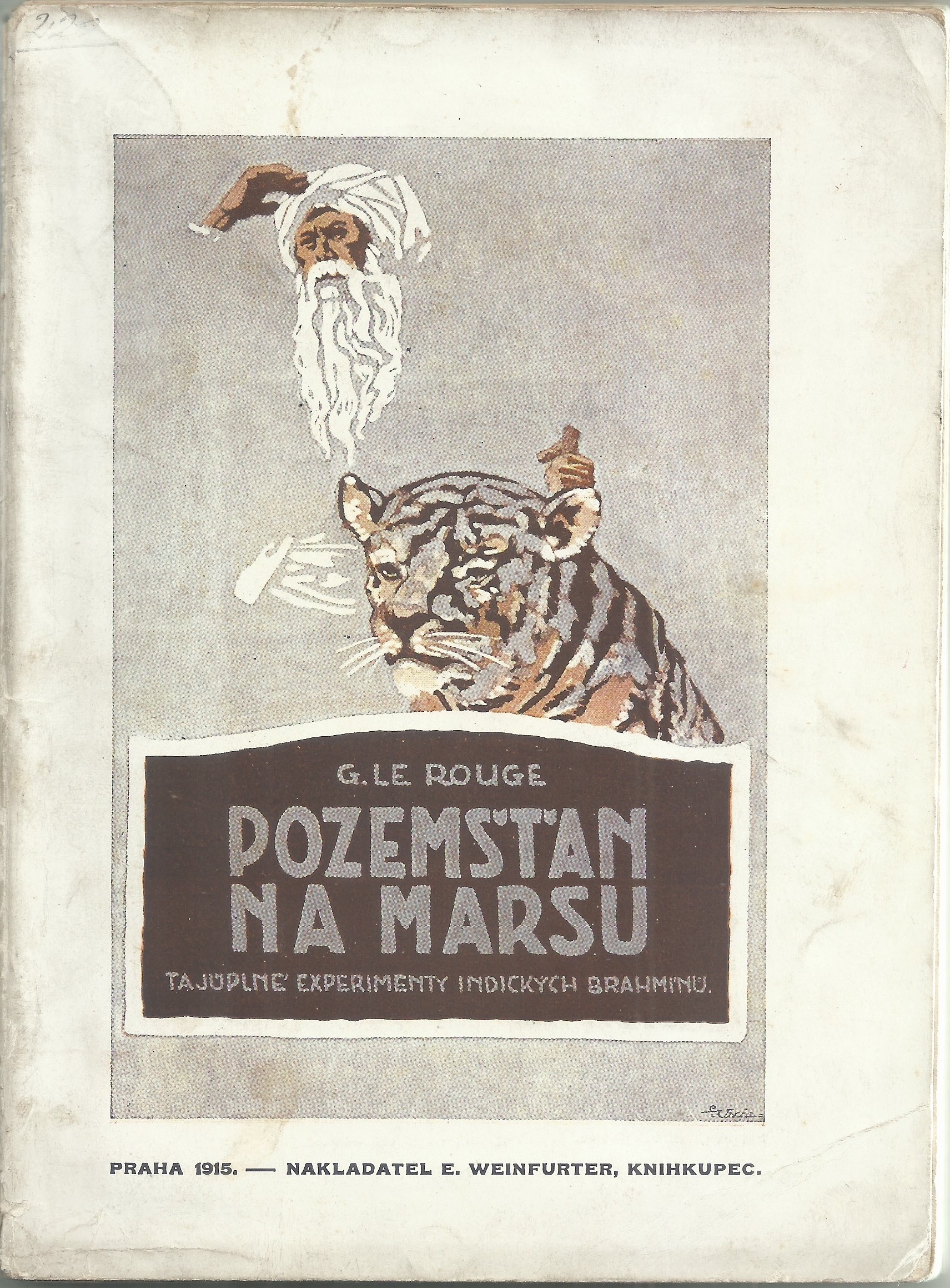 (Édition originale tchèque du Prisonnier de la planète Mars de Gustave Le Rouge ; Pozemšťan na Marsu, tajůplné experimenty indických brahmínů : fantastický román, Prague : Eduard Weinfurter, 1915. Ne pas hésiter à cliquer sur les images pour les agrandir)