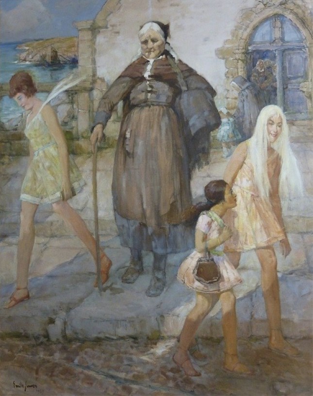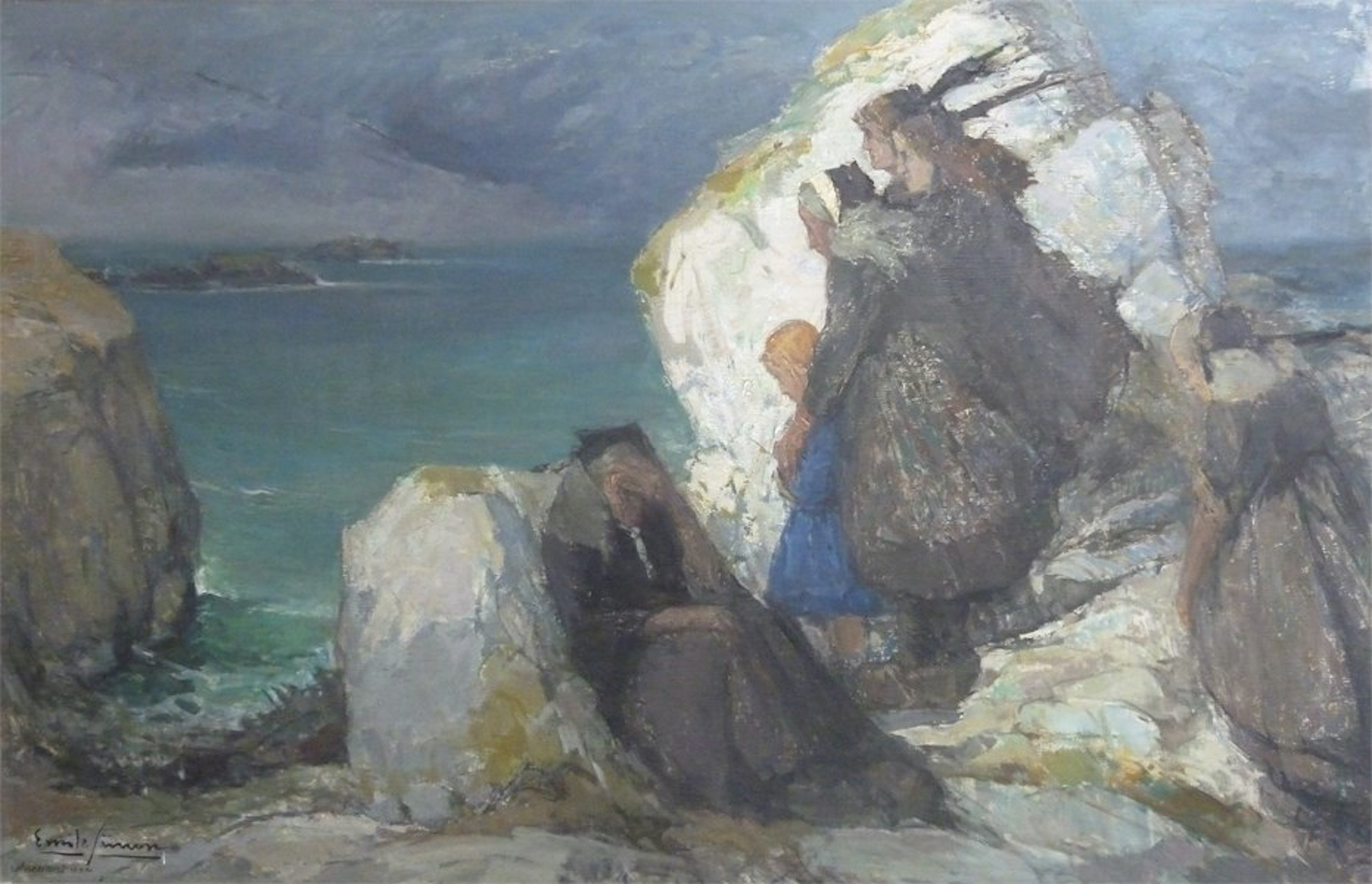 (Jean-Joseph Renaud, « Les Mille et un matins, » in Le Matin, quarante et unième année, n° 12874, vendredi 23 mai 1924 ; « Conte de la Dépêche » in La Dépêche du Berry, organe quotidien républicain régional, trente-troisième année, n° 8011, dimanche 15 novembre 1925 ; « Causerie du dimanche, » in Le Grand Écho du Nord de la France, cent-neuvième année, n° 324, dimanche 20 novembre 1927 ; in Le Nouvelliste du Morbihan, supplément littéraire illustré, deuxième année, n° 50, dimanche 3 février 1929 ; « Conte du Petit Provençal, » in Le Petit Provençal, organe de la démocratie du Sud-Est, cinquante-sixième année, n° 20014, samedi 28 novembre 1931 ; « Nos Contes, » in Le Progrès de la Côte-d’Or, journal républicain régional, soixante-quatrième année, n° 158, lundi 6 juin 1932 ; anonyme, « Conte de la Dépêche, » in La Dépêche d’Indochine, quotidien indépendant [Hanoï], n° 5, mardi 14 novembre 1933. Émile Simon, « Lande en fleurs à Ouessant, » huile sur toile, 1953)