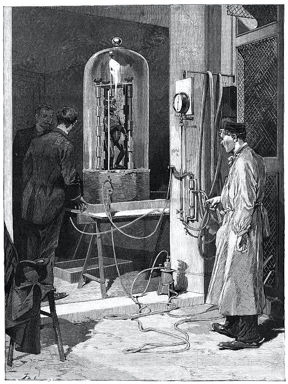 – Oui, quand le cadavre est enterré selon les conditions générales ; et le sang se coagule et se fige. Eh bien ! je vais vous expliquer pourquoi, ici, le sang est liquide et les yeux sont ouverts. Les terrains qui renferment une portion de calcaire sableux renferment également une certaine quantité de parties nitreuses et sulfureuses qui se trouvent particulièrement à la surface. Ces matières, soumises à l’action violente d’un soleil comme celui-ci, fermentent et mettent immédiatement en contact avec le corps enterré leurs exhalaisons. Ces exhalaisons pénètrent par les pores, se répandent dans tous les membres, décoagulent le sang et lui rendent sa libre circulation. Le sang défigé rend aux nerfs leur souplesse, et les nerfs, raidis par l’action de la mort, se distendent. C’est ce qui vous explique pourquoi les yeux se rouvrent. »