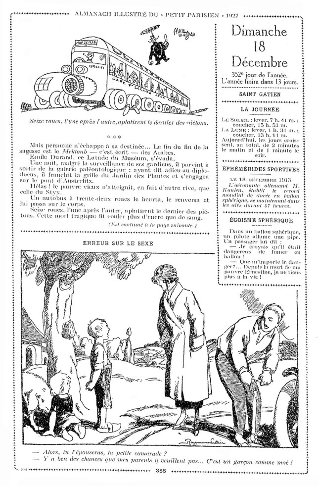 (Clément Vautel, in L’Écho de Tananarive, bi-hebdomadaire, première année, n° 6 et 7, mercredis 29 et 5 novembre 1924 ; repris dans L’Almanach illustré du Petit Parisien, 1927)