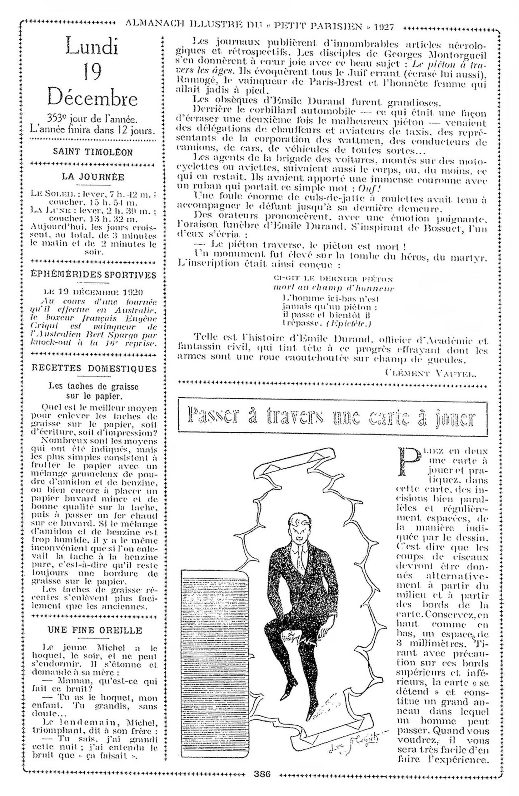 N. B. – Les expériences du « Dernier piéton » sont soumises au contrôle scientifique le plus rigoureux.