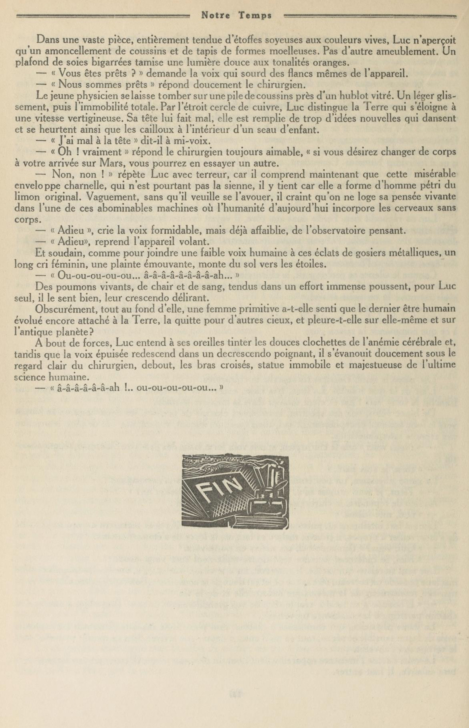 J’avais décelé, au bruit, l’émiettement d’une bielle et je répondis à mon interlocuteur avec résignation :