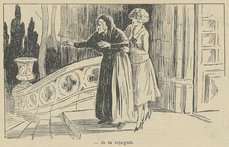 Alors, avec un cri terrible, j’ai devancé l’affreuse emprise. J’ai bondi dans l’escalier tortueux où une porte s’est entrouverte, sans bruit, sur mon passage.