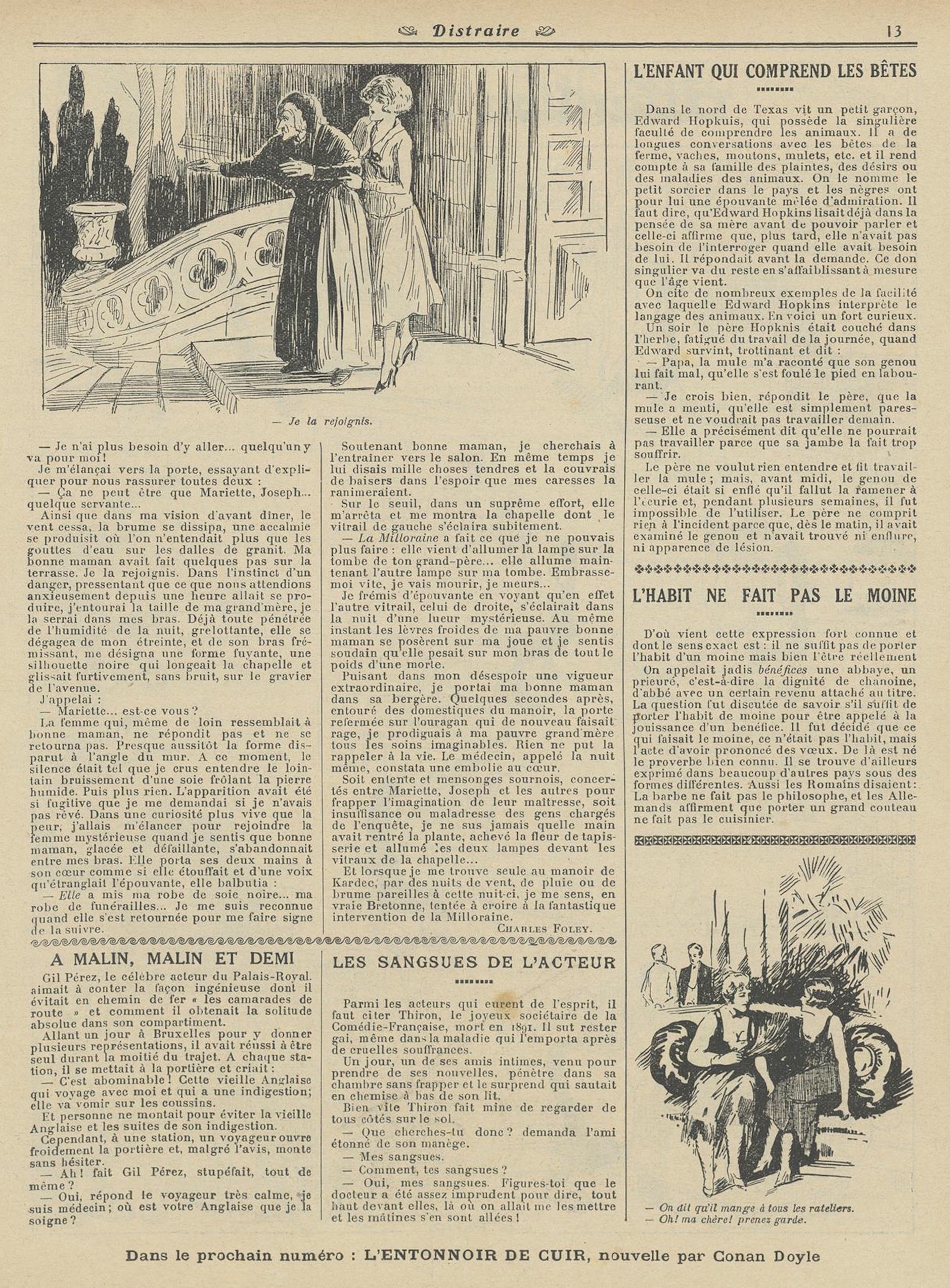 L’inconnu chassa, du poing, les enfants qui assiégeaient les marchepieds de ma voiture ; puis il me demanda, fort civilement :