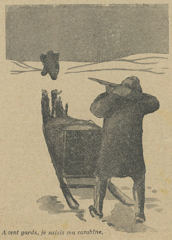Allait-il disparaître sans que je pusse le voir de plus près ? Je bondis vers mon traîneau, j’attelai mes six chiens-loups, je me lançai sur ses traces.