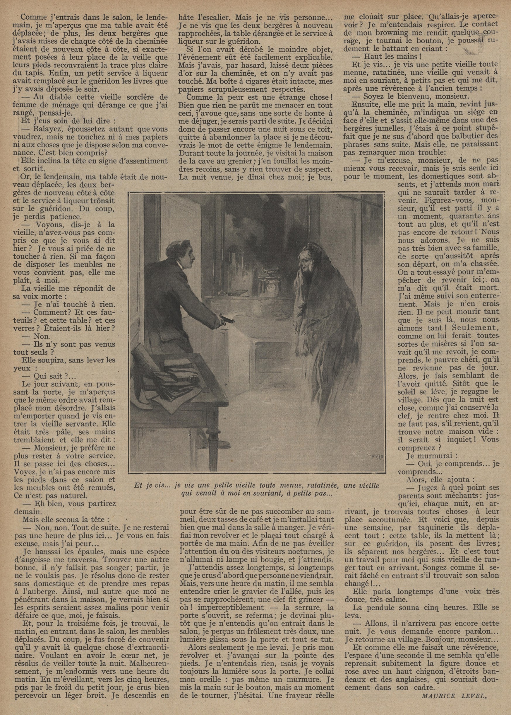 (Maurice Level, in Le Miroir, revue hebdomadaire des actualités, troisième année, nouvelle série, n° 7, dimanche 11 janvier 1914. Sauf erreur de notre part, cette nouvelle n’a jamais été reprise en volume)