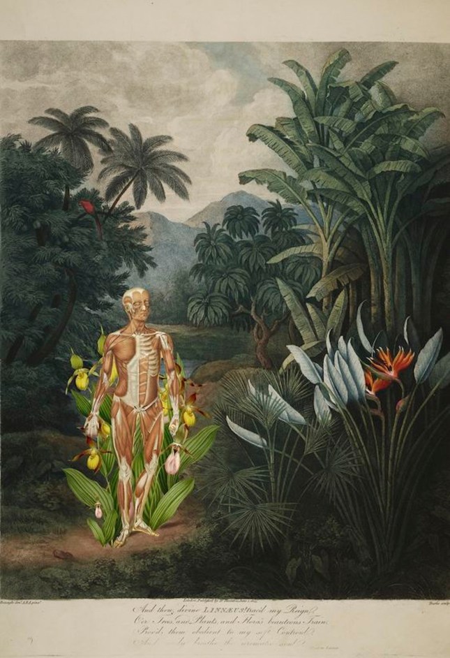 (René Schwaeblé, in Le Phare littéraire et artistique, huitième année, deuxième série, n° 200, samedi 5 mai 1894 ; « Walking in Paradise, » collage anatomique de Bedelgeuse, réalisé à partir d’une gravure en couleur du Temple de la Flore de Robert Thornton, 1807)