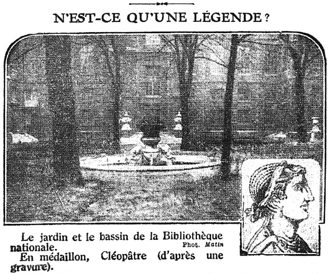 Périodiquement, tous les douze à quinze ans, le bruit court à Paris que Cléopâtre y est enterrée.