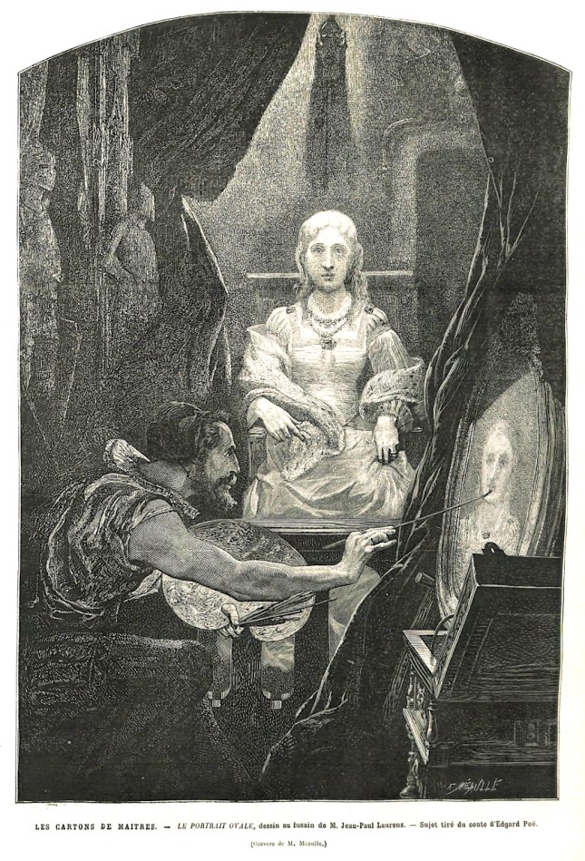 « C’était une jeune fille d’une très rare beauté, et qui n’était pas moins aimable que pleine de gaieté. Et maudite fut l’heure où elle vit, et aima, et épousa le peintre. Lui, passionné, studieux, austère, et ayant déjà trouvé une épouse dans son Art ; elle, une jeune fille d’une très rare beauté, et non moins aimable que pleine de gaieté : rien que lumière et sourires, et la folâtrerie d’un jeune faon ; aimant et chérissant toutes choses ; ne haïssant que l’Art qui était son rival ; ne redoutant que la palette et les brosses, et les autres instruments fâcheux qui la privaient de la figure de son adoré. Ce fut une terrible chose pour cette dame que d’entendre le peintre parler du désir de peindre sa jeune épouse. Mais elle était humble et obéissante, et elle s’assit avec douceur pendant de longues semaines dans la sombre et haute chambre de la tour, où la lumière filtrait sur la pâle toile seulement par le plafond. Mais lui, le peintre, mettait sa gloire dans son œuvre, qui avançait d’heure en heure et de jour en jour. – Et c’était un homme passionné, et étrange, et pensif, qui se perdait en rêveries ; si bien qu’il ne voulait pas voir que la lumière qui tombait si lugubrement dans cette tour isolée desséchait la santé et les esprits de sa femme, qui languissait visiblement pour tout le monde, excepté pour lui. Cependant, elle souriait toujours, et toujours sans se plaindre, parce qu’elle voyait que le peintre (qui avait un grand renom) prenait un plaisir vif et brûlant dans sa tâche, et travaillait nuit et jour pour peindre celle qui l’aimait si fort, mais qui devenait de jour en jour plus languissante et plus faible. Et, en vérité, ceux qui contemplaient le portrait parlaient à voix basse de sa ressemblance, comme d’une puissante merveille et comme d’une preuve non moins grande de la puissance du peintre que de son profond amour pour celle qu’il peignait si miraculeusement bien. – Mais, à la longue, comme la besogne approchait de sa fin, personne ne fut plus admis dans la tour ; car le peintre était devenu fou par l’ardeur de son travail, et il détournait rarement ses yeux de la toile, même pour regarder la figure de sa femme. Et il ne voulait pas voir que les couleurs qu’il étalait sur la toile étaient tirées des joues de celle qui était assise près de lui. Et, quand bien des semaines furent passées et qu’il ne restait plus que peu de chose à faire, rien qu’une touche sur la bouche et un glacis sur l’œil, l’esprit de la dame palpita encore comme la flamme dans le bec d’une lampe. Et alors la touche fut donnée, et alors le glacis fut placé ; et pendant un moment le peintre se tint en extase devant le travail qu’il avait travaillé ; mais, une minute après, comme il contemplait encore, il trembla, et il fut frappé d’effroi ; et, criant d’une voix éclatante : « En vérité, c’est la Vie elle-même ! » – il se retourna brusquement pour regarder sa bien-aimée : – elle était morte ! »