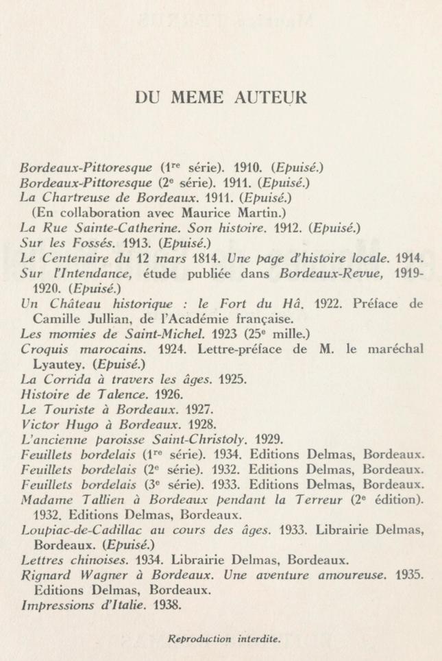 J’en sais une qui, tous les soirs, à la nuit tombante, trompant la surveillance du gardien de la tour, s’évade, s’enfuit par la ville et roule jusqu’à l’aube d’étonnements en étonnements. Gonflant sa peau parcheminée, elle glisse sur les trottoirs avec un bruit de vieille affiche qu’entraîne le vent. Elle s’arrête, prise de stupeur devant les grands magasins modernes, sous la lumière surnaturelle des lampes électriques. Cherchant partout le Bordeaux d’Henri IV, le vieux Bordeaux qu’elle a connu et aimé, elle n’en retrouve nulle part la trace. La langue qu’on parle autour d’elle lui est presque inconnue. Où sont les chaises à porteurs, les litières fermées, les carrosses énormes roulant par les rues étroites, obligeant les passants à se coller sous l’auvent des portes, les pieds dans des flaques d’eau ? Où sont les cavalcades d’hommes d’armes, les moines portant le saint-viatique aux pestiférés ? Où donc aussi le bruit incessant et berceur des cloches toujours en branle aux campaniles des couvents et des monastères, et le bourdon sonnant pour tous les saints aux clochers des églises ?