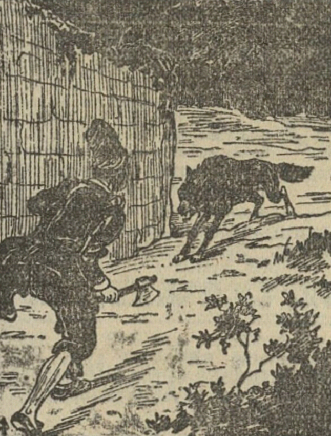 Le choc fut irrésistible. L’aventurier, culbuté, lâcha son arme. À terre, il voulut, de ses poings d’hercule, repousser l’assaillant. Sa défense fut vaine. Des crocs aigus s’enfoncèrent dans sa gorge… En quelques instants, il expira.