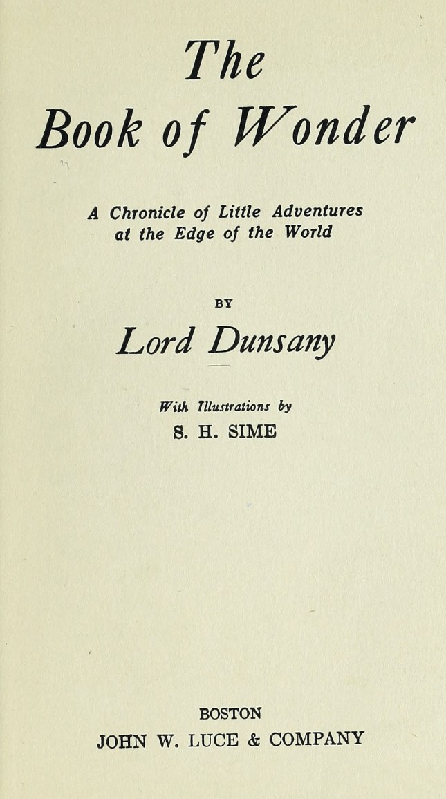 ☞ Édition originale : Lord Dunsany, The Book of Wonder, a Chronicle of Little Adventures at the Edge of the World, illustré par Sidney Herbert Sime, London: William Heinemann, 1912.