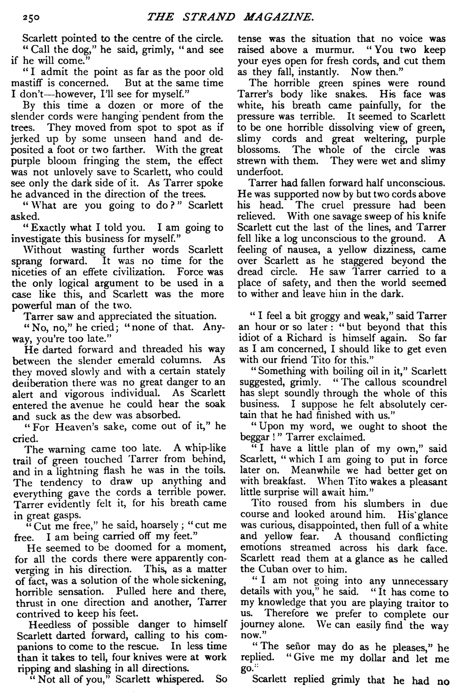 Je compris tout. Juan Sandraz, jaloux de me voir adresser quelques compliments à la jeune fille, avait profité du désir exprimé par moi de me procurer des orchidées rouges, semblables à celles de Vicenta. Il avait résolu de me faire mourir de cette atroce manière pour se venger.