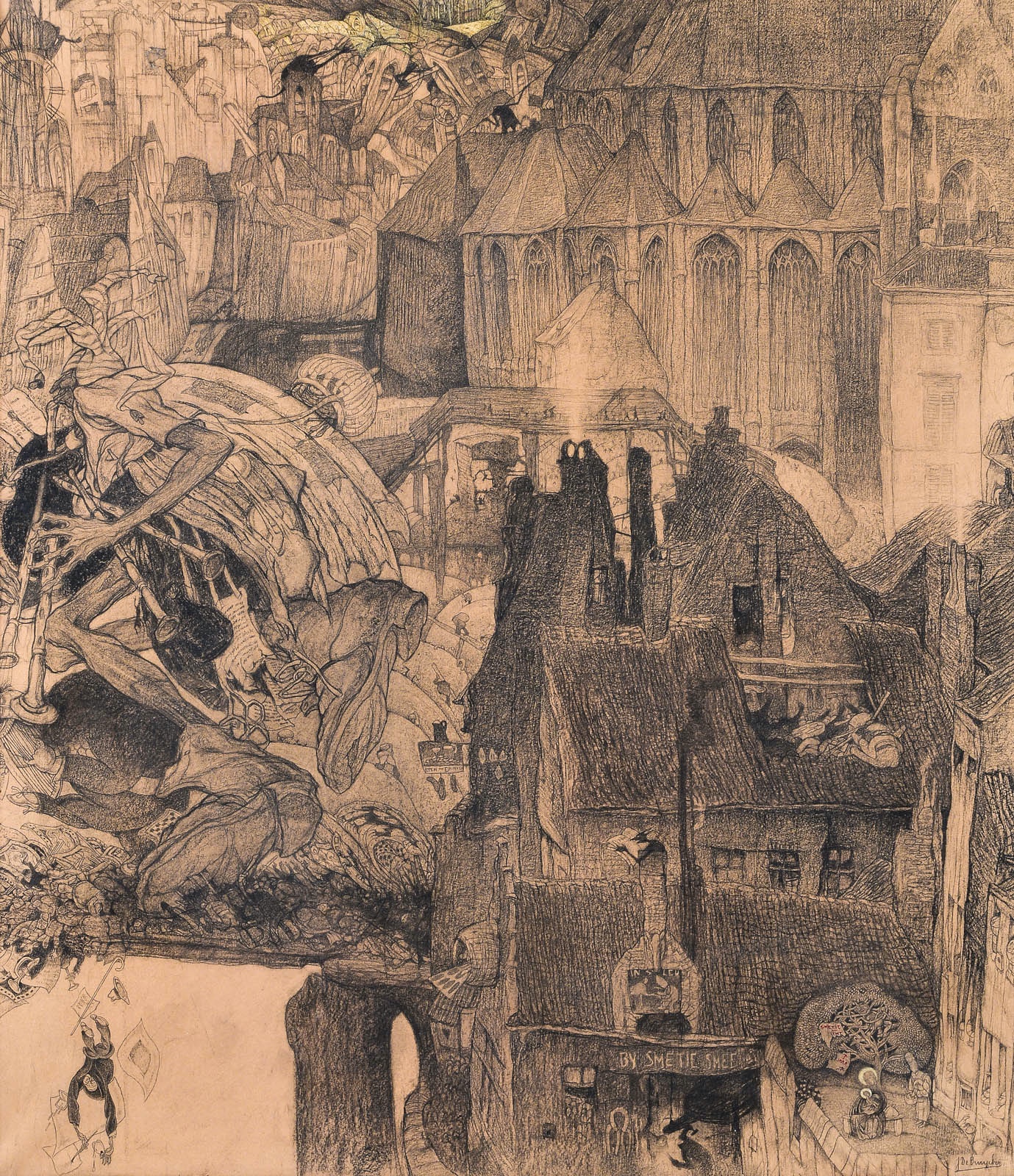 (Jean-Louis Bouquet, in Les Spectacles, organe d’informations théâtrales, musicales, cinématographiques [Lille], troisième année, n° 75, vendredi 5 juin 1925 ; Jules de Bruycker, « Une Petite Ville nerveuse, » eau-forte, 1926)