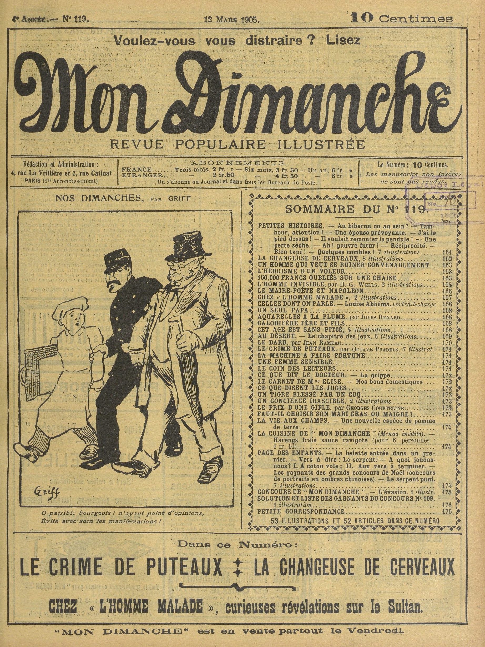 Vers dix heures du matin, notre auto fit son entrée solennelle dans la bonne ville de X… Malheureusement, elle s’arrêta au bout de dix mètres, car les cailloux pointus composant le pavé menaçaient fort de mettre ses pneus en capilotade.