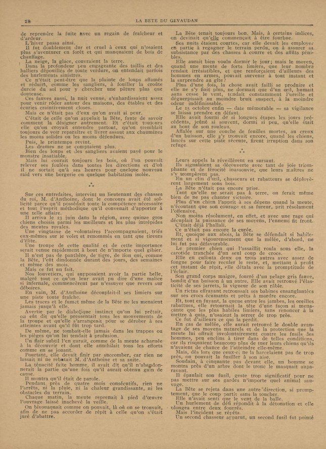 Beaucoup de bonnes âmes en doutèrent sincèrement et, parmi elles, des gens qui avaient eu affaire à ladite Bête et qui ne pouvaient admettre qu’elle fût un fauve d’une espèce aussi banale que le loup.