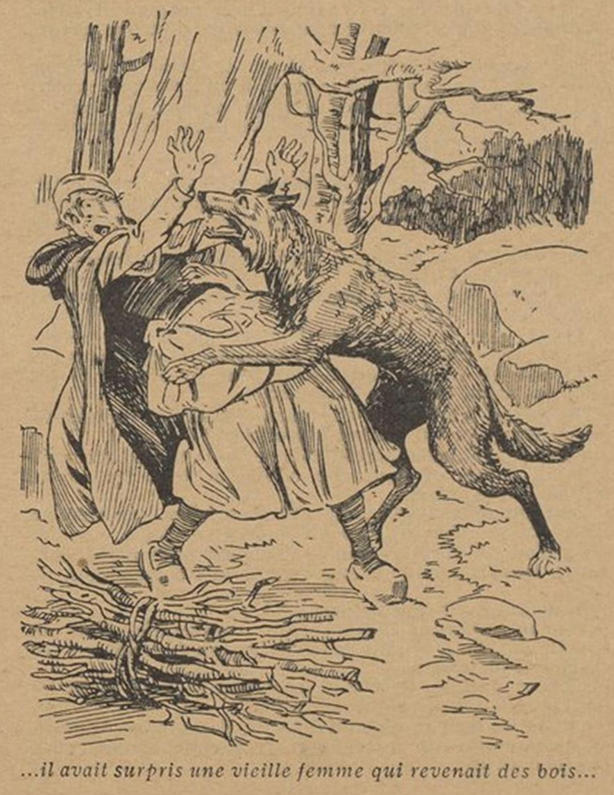 Là, des enfants l’avaient vu apparaître soudain aux lisières de leur bourg natal et se jeter sur l’un d’eux, qui venait de tomber en voulant fuir. Du pauvre petit, ou n’avait relevé que des restes méconnaissables, quand des hommes, avertis par les cris de la victime et de ses camarades, étaient accourus, armés de fourches et de faux.