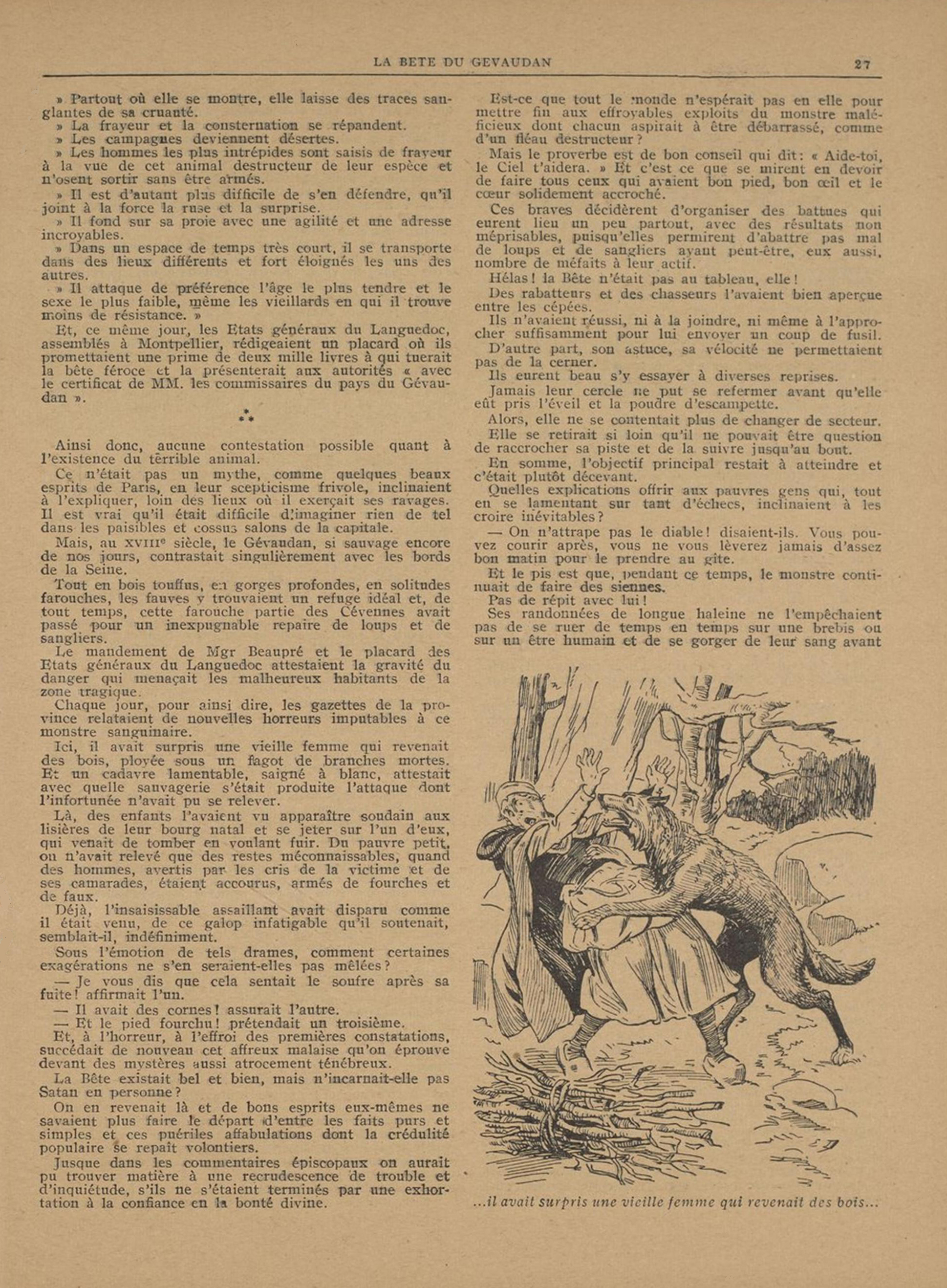 Beaucoup de bonnes âmes en doutèrent sincèrement et, parmi elles, des gens qui avaient eu affaire à ladite Bête et qui ne pouvaient admettre qu’elle fût un fauve d’une espèce aussi banale que le loup.
